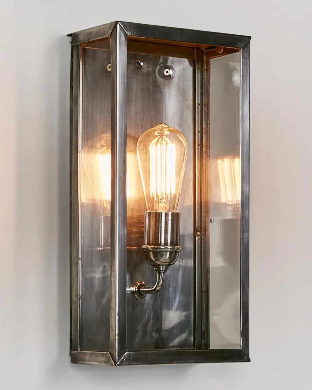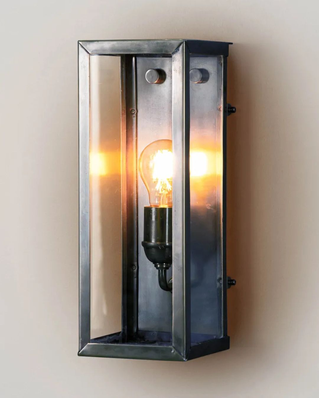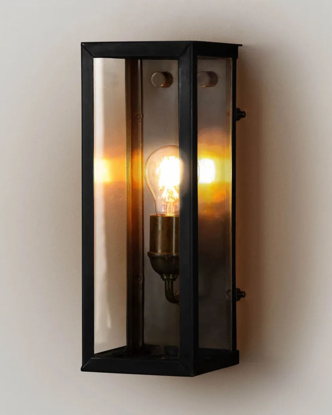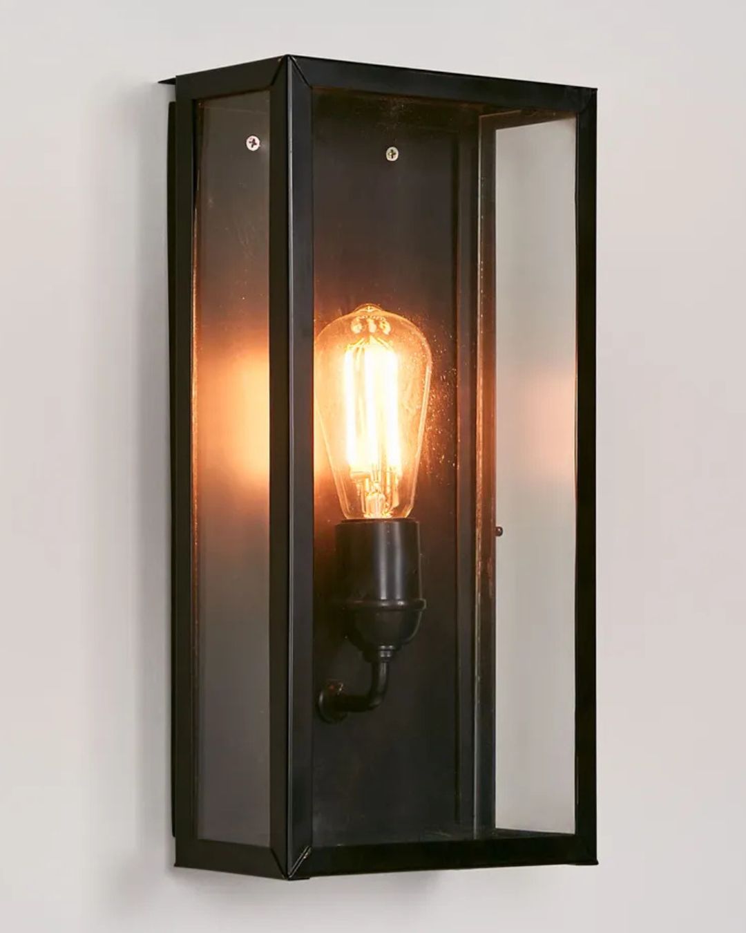 The Encased Lantern Wall Light is an industrial-style fitting available in two sizes. Featuring three timeless finishes, choose from antique brass or silver to match surrounding hardware, or a simple black finish for modern interiors. Pair with a filament-style vintage globe to create a warm inviting atmosphere.