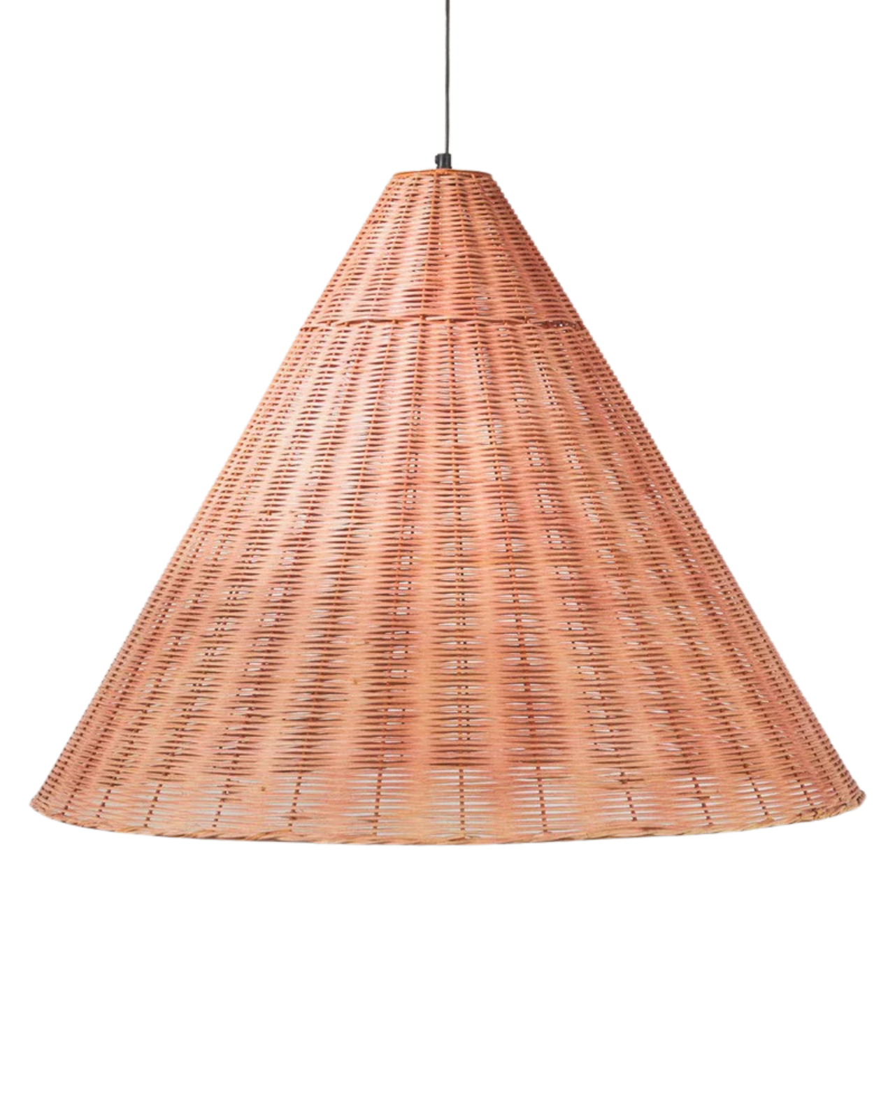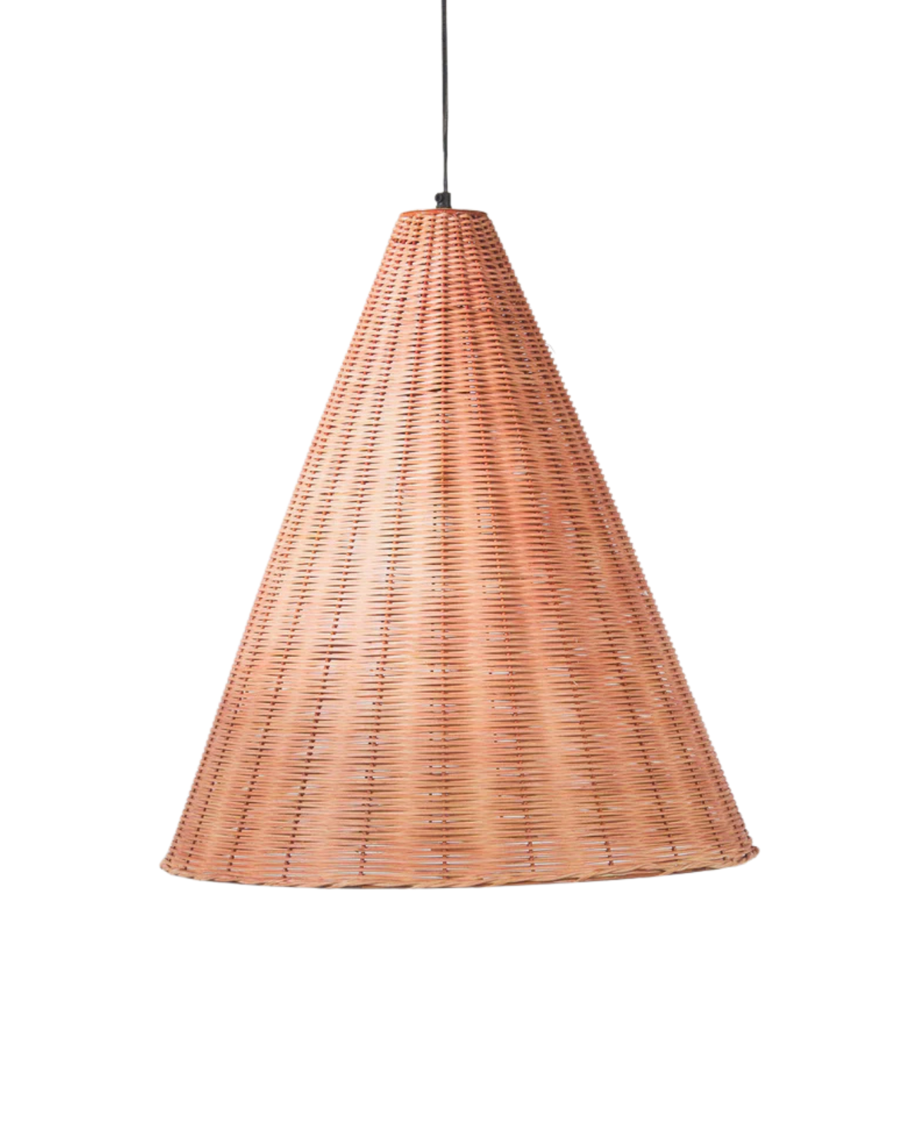 Bring organic design to an interior space with this unique handcrafted rattan pendant. Featuring an intricate texture and weave, this pendant will elevate a space with an elegant style when placed in a living room, dining room, bedroom, or hallway space. The elongated cone design and organic rattan material give it a classic, timeless aesthetic that is perfect for any room.
