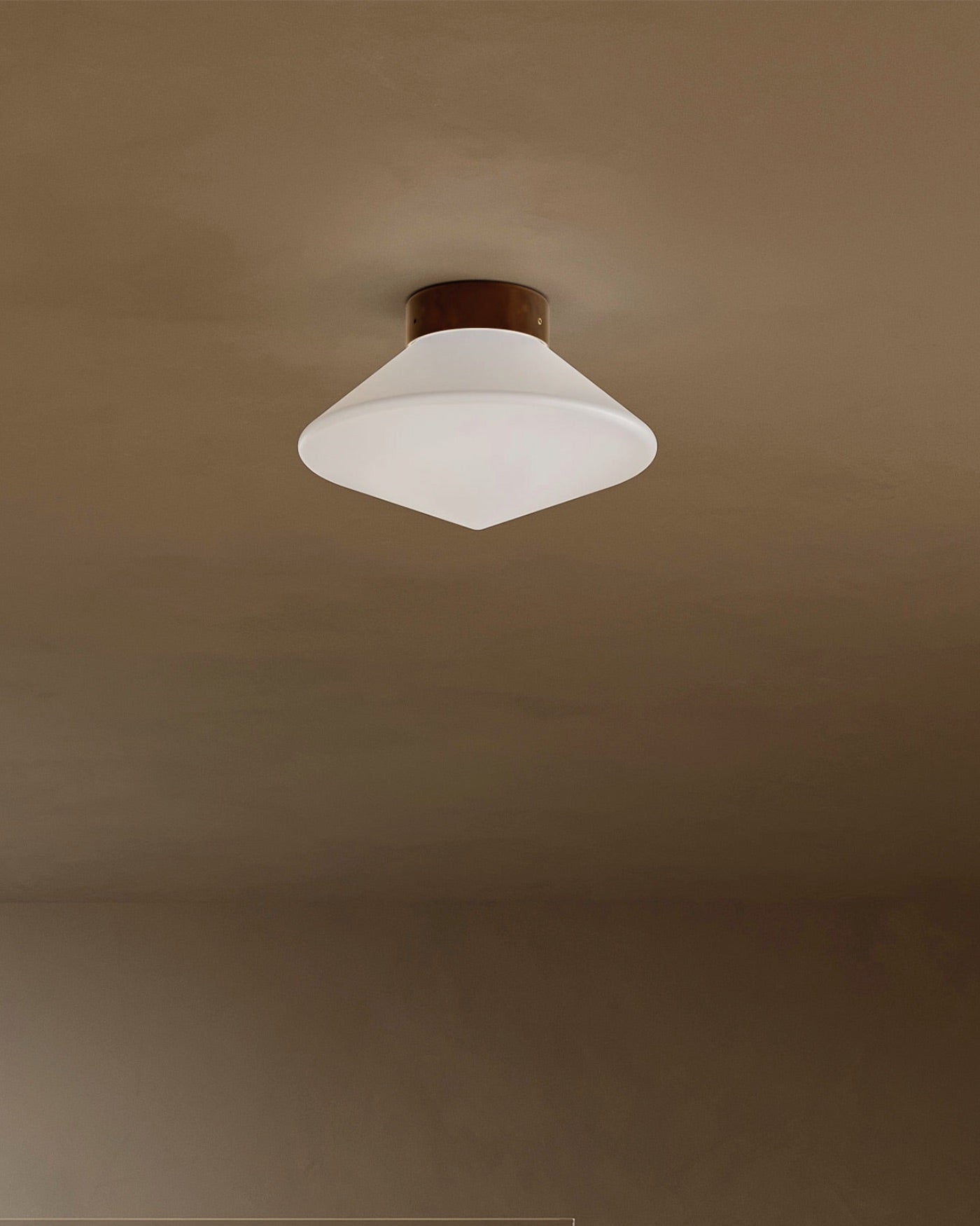 Bronze diamond shaped ceiling light in a beige room