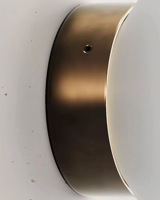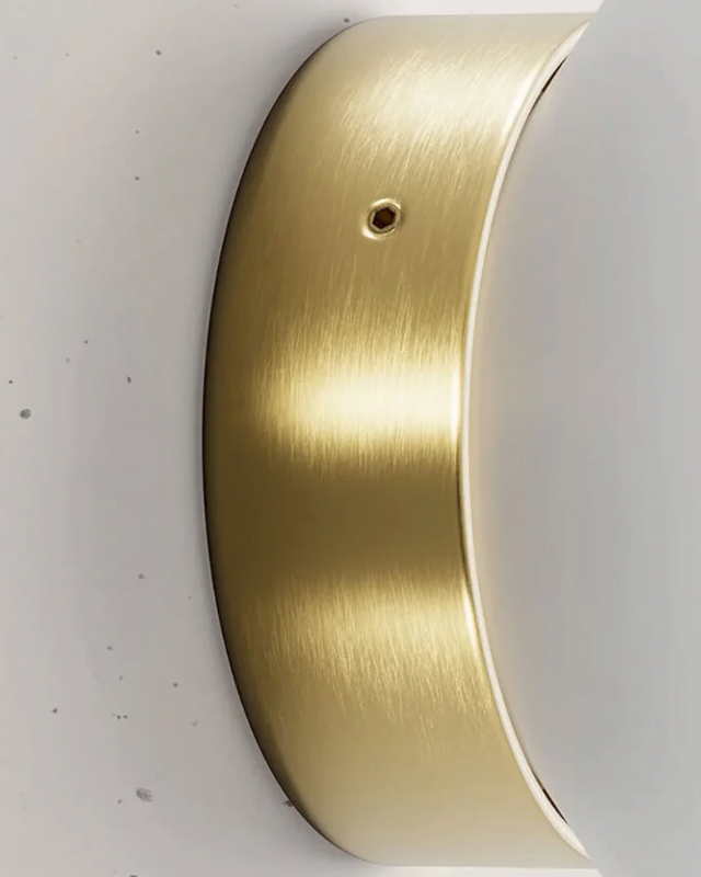 Natural brass finish of a brass and glass wall light