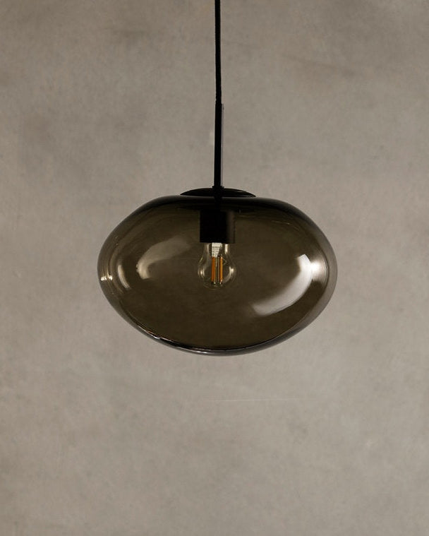Crafted with precision by skilled glassworkers in Melbourne, Australia, the Mellow Oval Pendant Light boasts a sleek, rounded oval shape. This modern fixture is a stylish and versatile addition to any room, perfect for a dining room or bedroom. Choose from two transparent finishes: Sargasso and Graphite for a soft tinted light. Install individually or in clusters to create a captivating centrepiece.