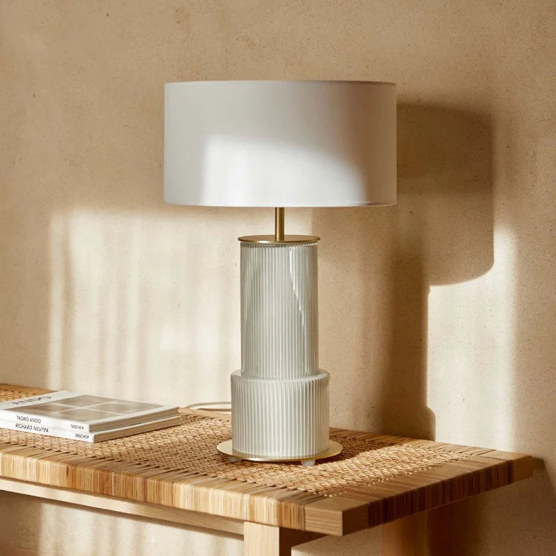 Taupe Lined Glass Table Lamp