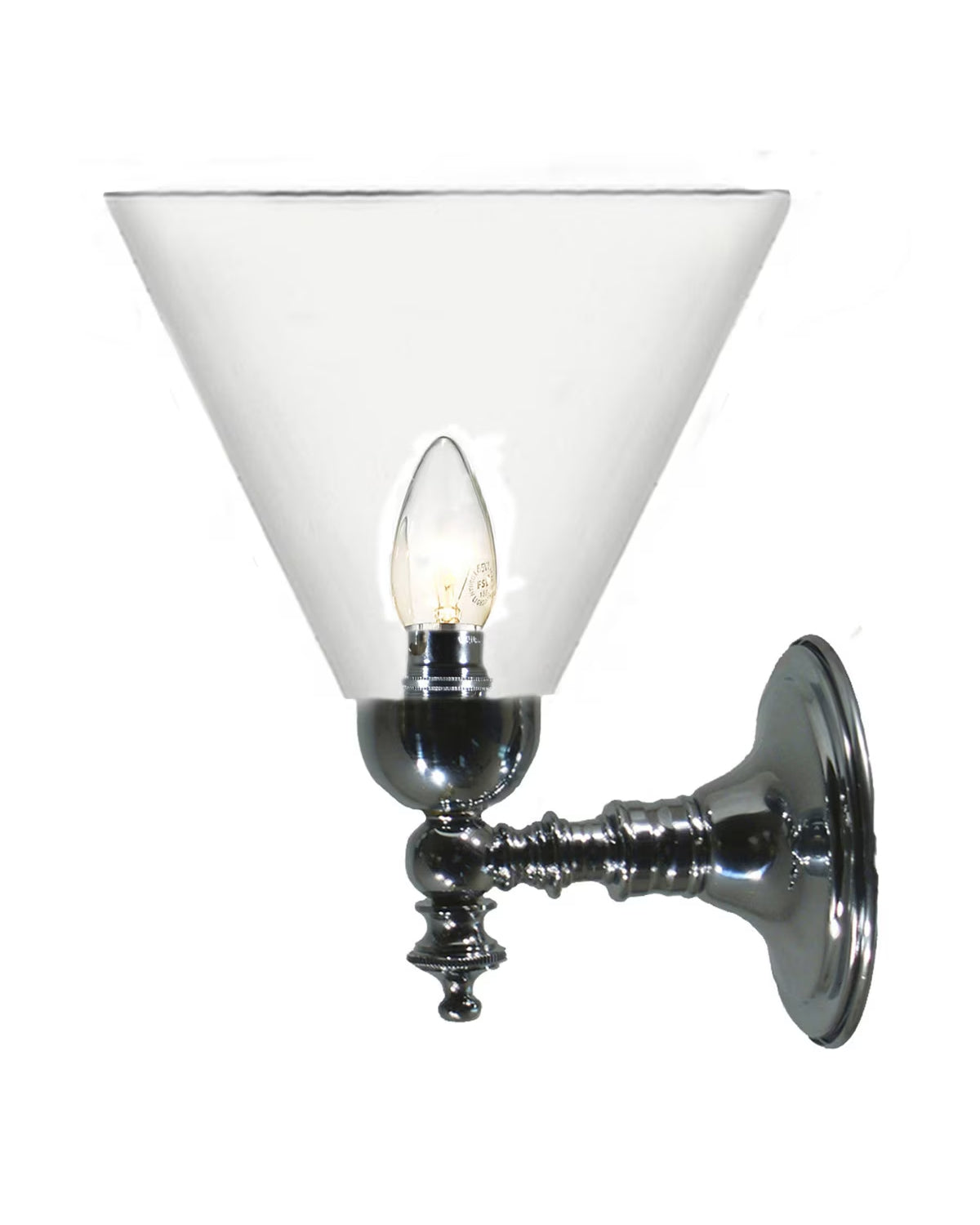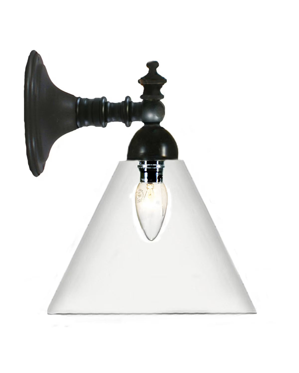 The Traditional Conical Wall Bracket is a traditional, Hamptons-style wall light featuring a cone-shaped lampshade in either Dark Bronze or Chrome metal bracket finish. A perfect addition to any hallway space. Pair with a small filament-style globe for a vintage look.