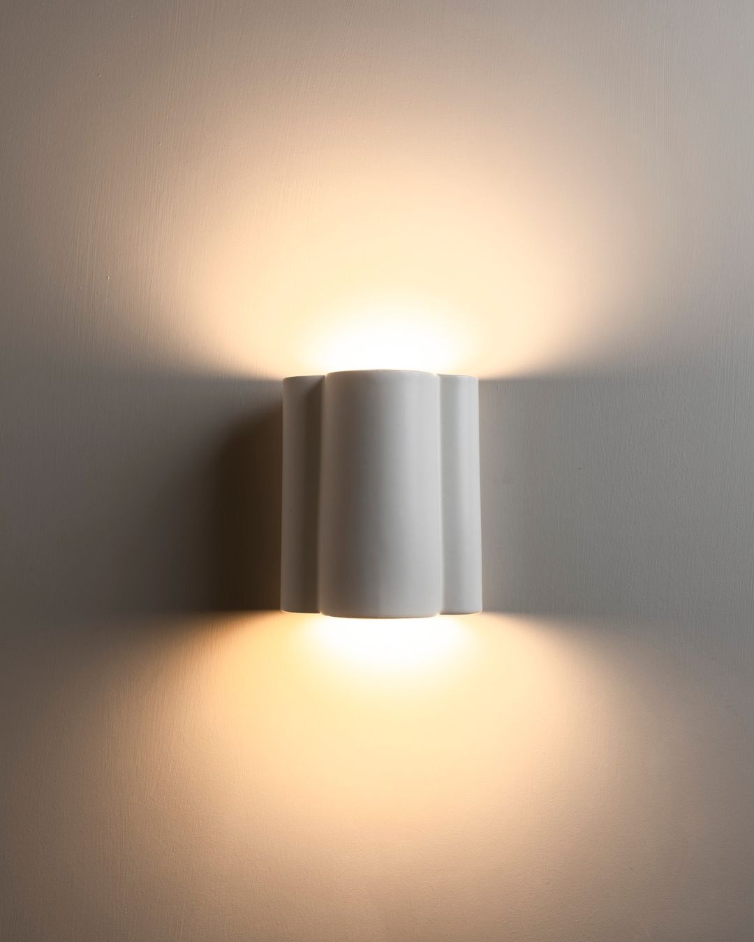 Carefully handmade in Tasmania from recycled clay within a slip-cast mould this cloud-like design is inspired by curved forms. Dipped in a signature eggshell white glaze this timeless wall sconce creates a striking downlight perfect for adding atmospheric lighting to beside the bed, living rooms or entrances. This IP65 fitting is ideal for both interior and exterior areas. Due to the handmade nature of these wall lights, slight variations in size and finish are to be expected and are to be celebrated.