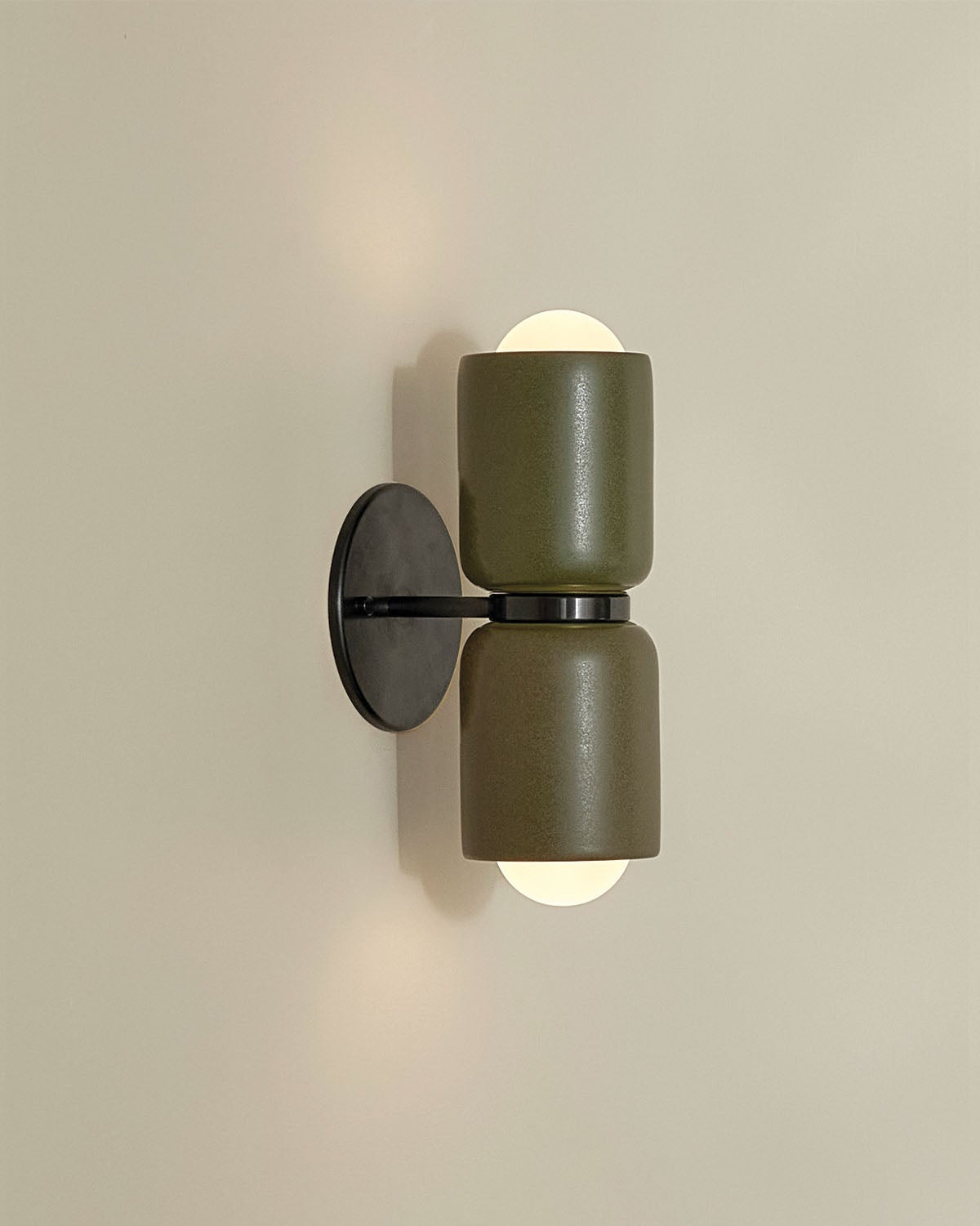 Ceramic Up Down Wall Light Terra 2 Olive Side Light On White