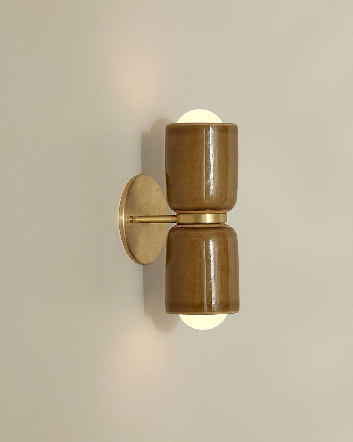 Ceramic Up Down Wall Light Terra 2 Olive Side Light On Brass