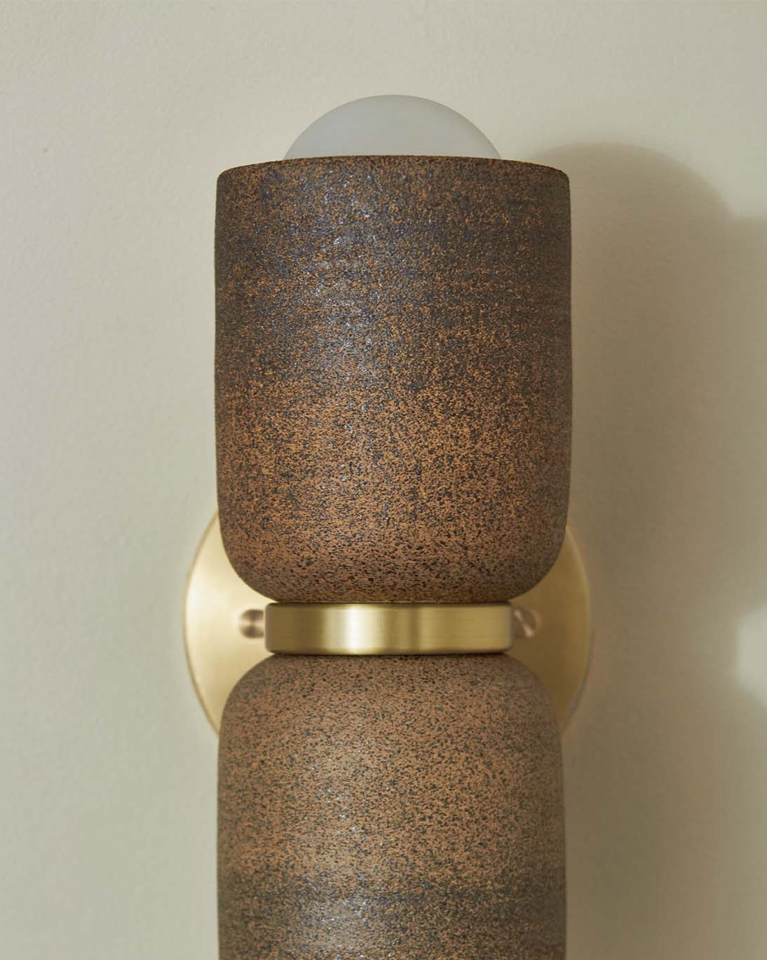 Ceramic Up Down Wall Light Terra 2 Raw Clay Light On Brass