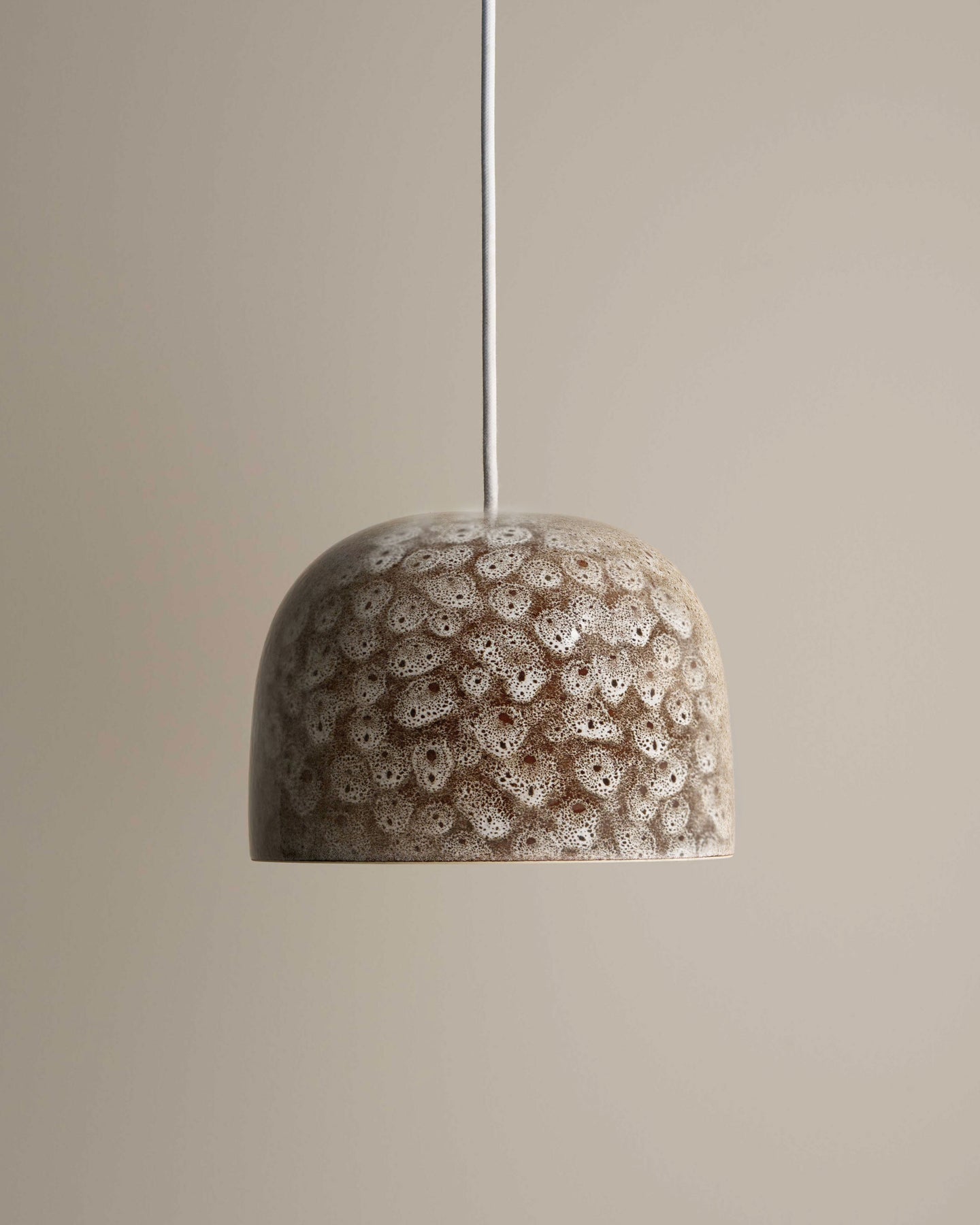 Textured pendant light fixture on a neutral background