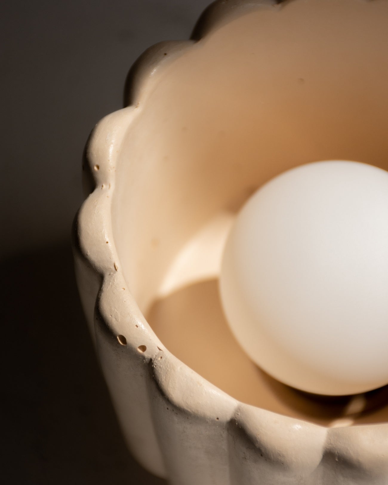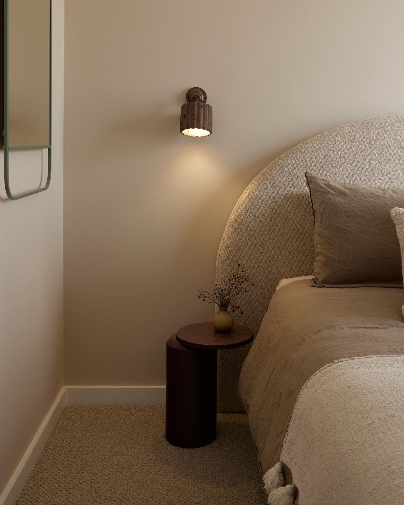 The Adjustable Fluted Concrete Wall Light combines raw materials with functional lighting. Hand-poured locally in Ballina, the cylindrical shade is made from a concrete and glass fibre mix which allows the fitting to be strong, yet lightweight. Featuring a fluted shape with a scalloped edge, this wall light offers modern design and interesting shadows when illuminated. An adjustable knuckle available in Brass, Aged Brass or Bronze allows for precise light positioning, making it suitable for reading nooks and offices.