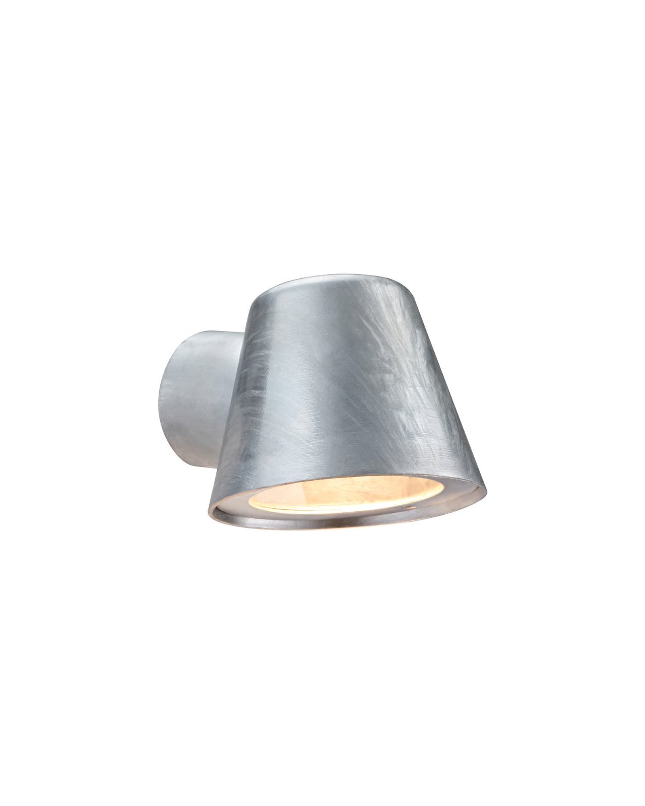 Designed in Denmark, this small Scandinavian wall light features a clean, functional design that directs light downward for practical illumination. Constructed from durable metal with an IP44 rating, it’s suitable for outdoor areas and bathrooms alike. This coastal-grade fitting includes a 15-year deterioration guarantee, ensuring lasting performance in harsh environments. Available in a Brass or Galvanised finish, it’s a refined choice for both modern and traditional settings.