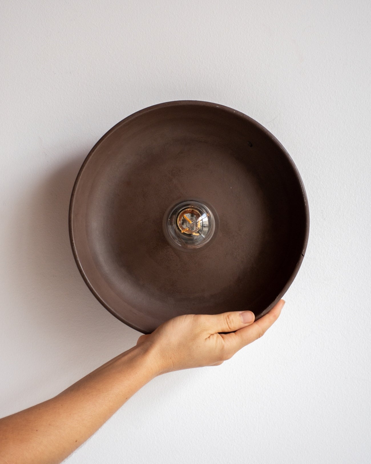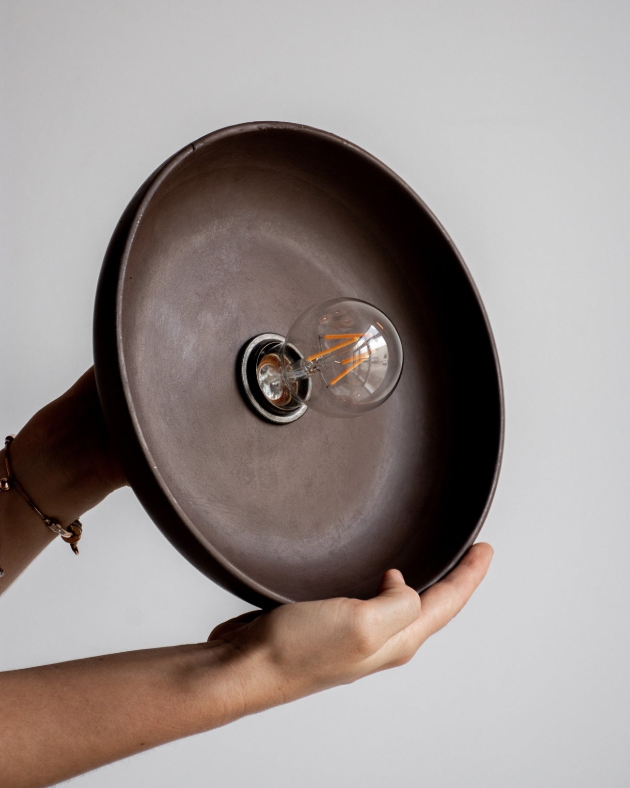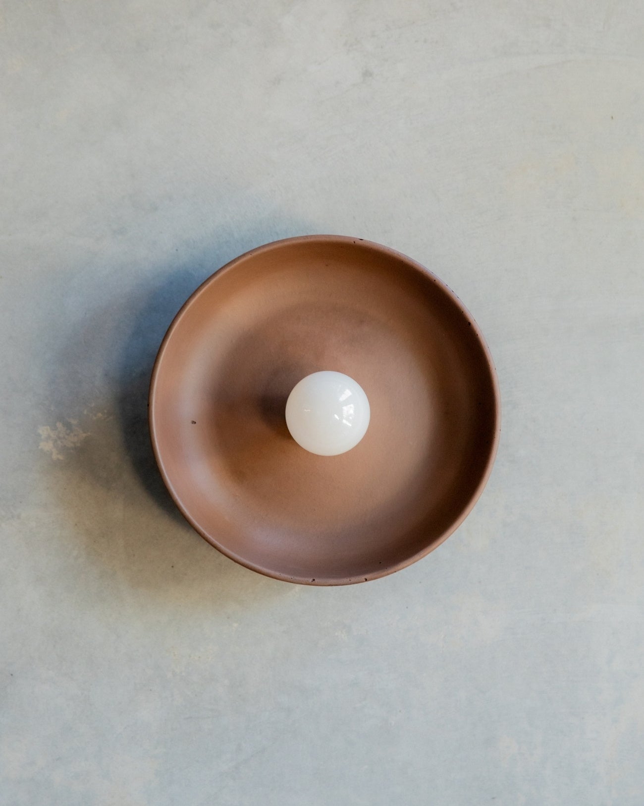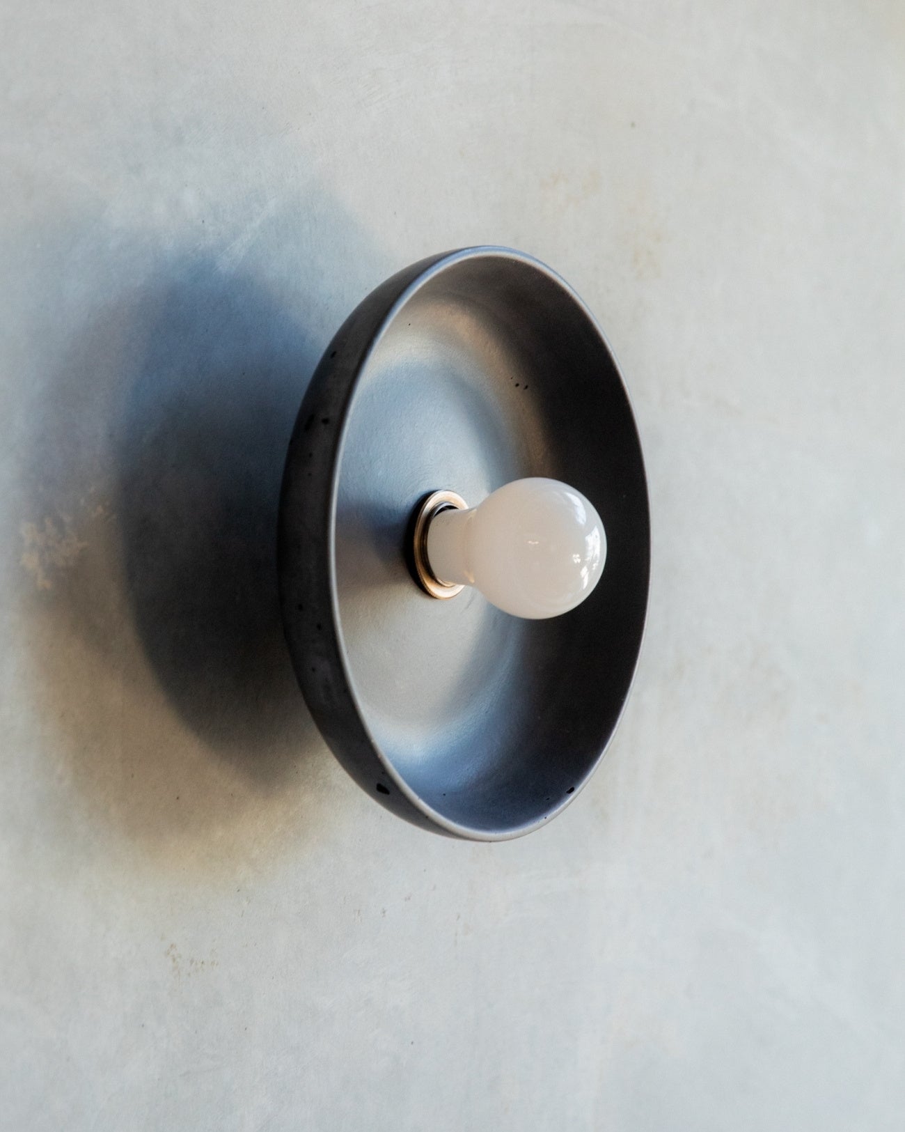 The Concrete Bowl Wall Sconce, hand-poured and assembled locally in the Northern Rivers, combines contemporary design with meticulous craftsmanship. Available in seven shade finishes, this durable sconce brings sculptural interest to interior spaces. Ideal for bedrooms, powder rooms, hallways, or living areas, it can be paired with larger G95 globes for brighter illumination, or smaller G45 or A60 globes to let the shade remain the focal point, as pictured.