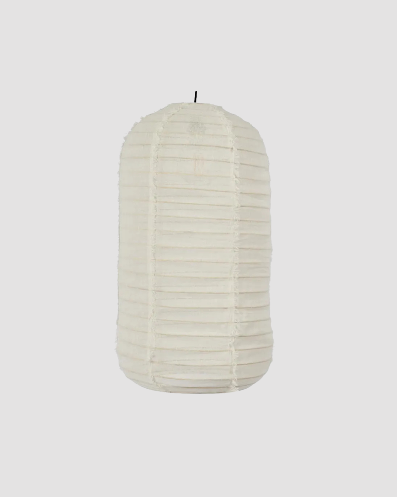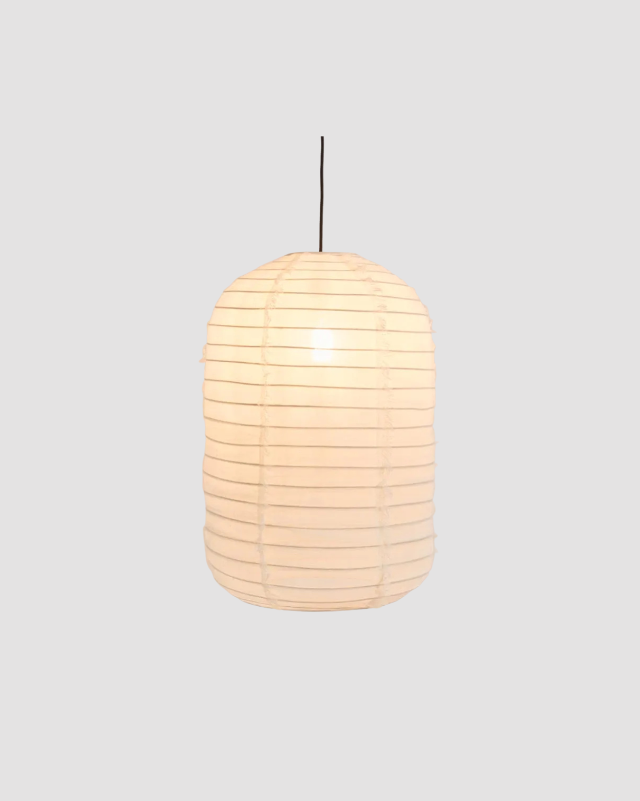 The Japanese Oblong Linen Pendant Light is crafted from premium Italian linen and paired with a black suspension (1.3 m cord drop with lamp holder and canopy) for a complete lighting solution. Available in two sizes and two finishes Marshmallow (soft off-white) and Natural (warm beige) this design brings texture, warmth, and understated character to any space.