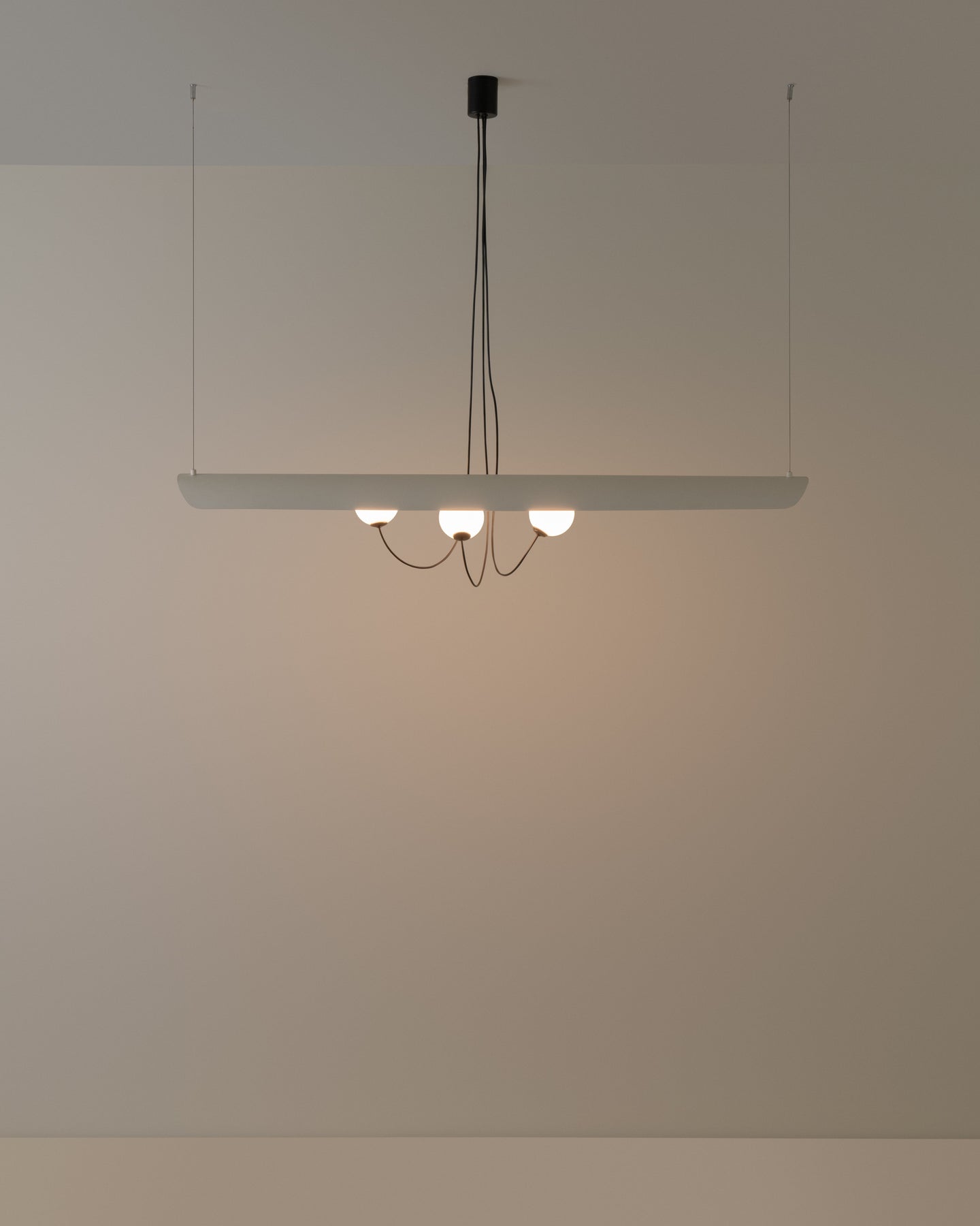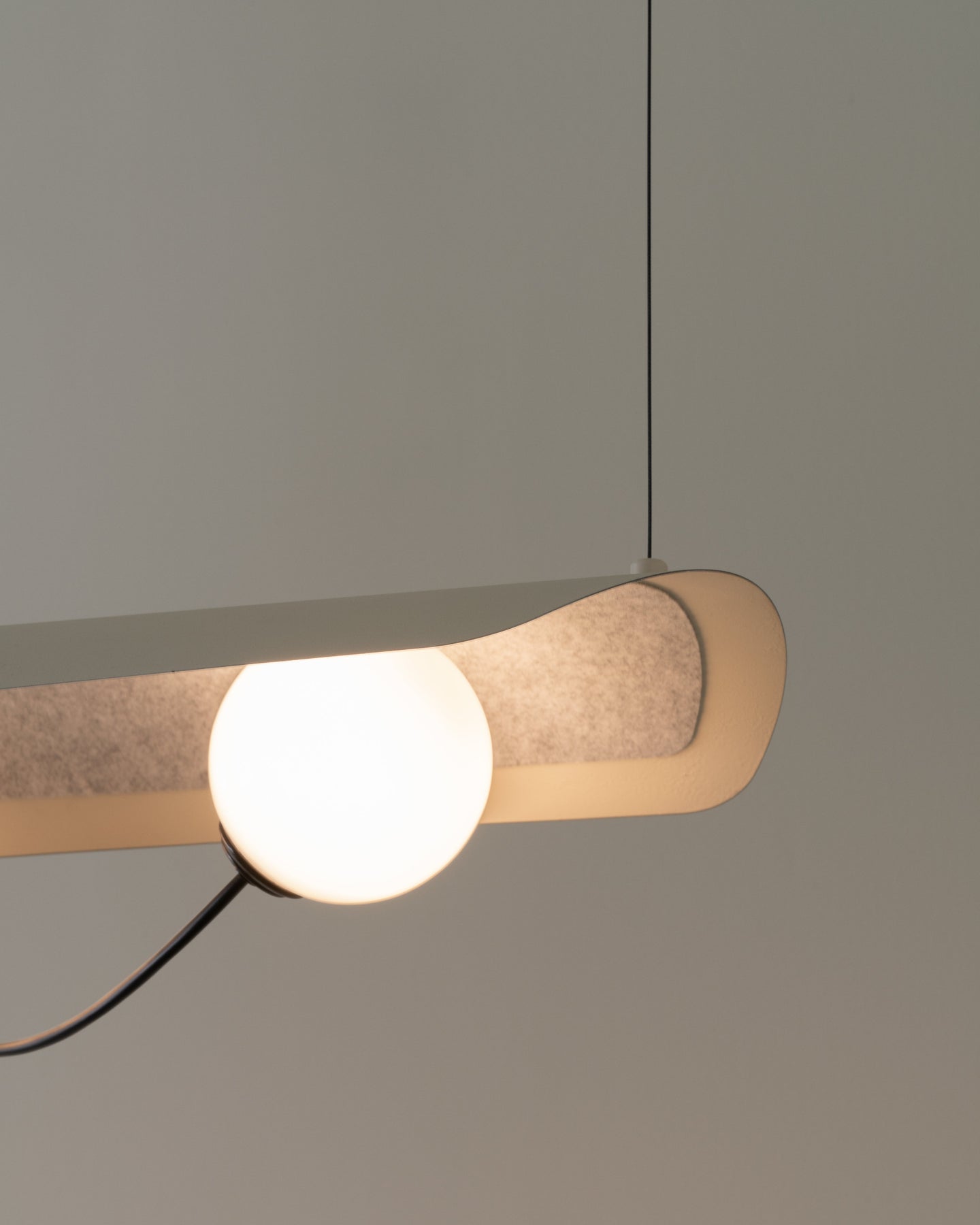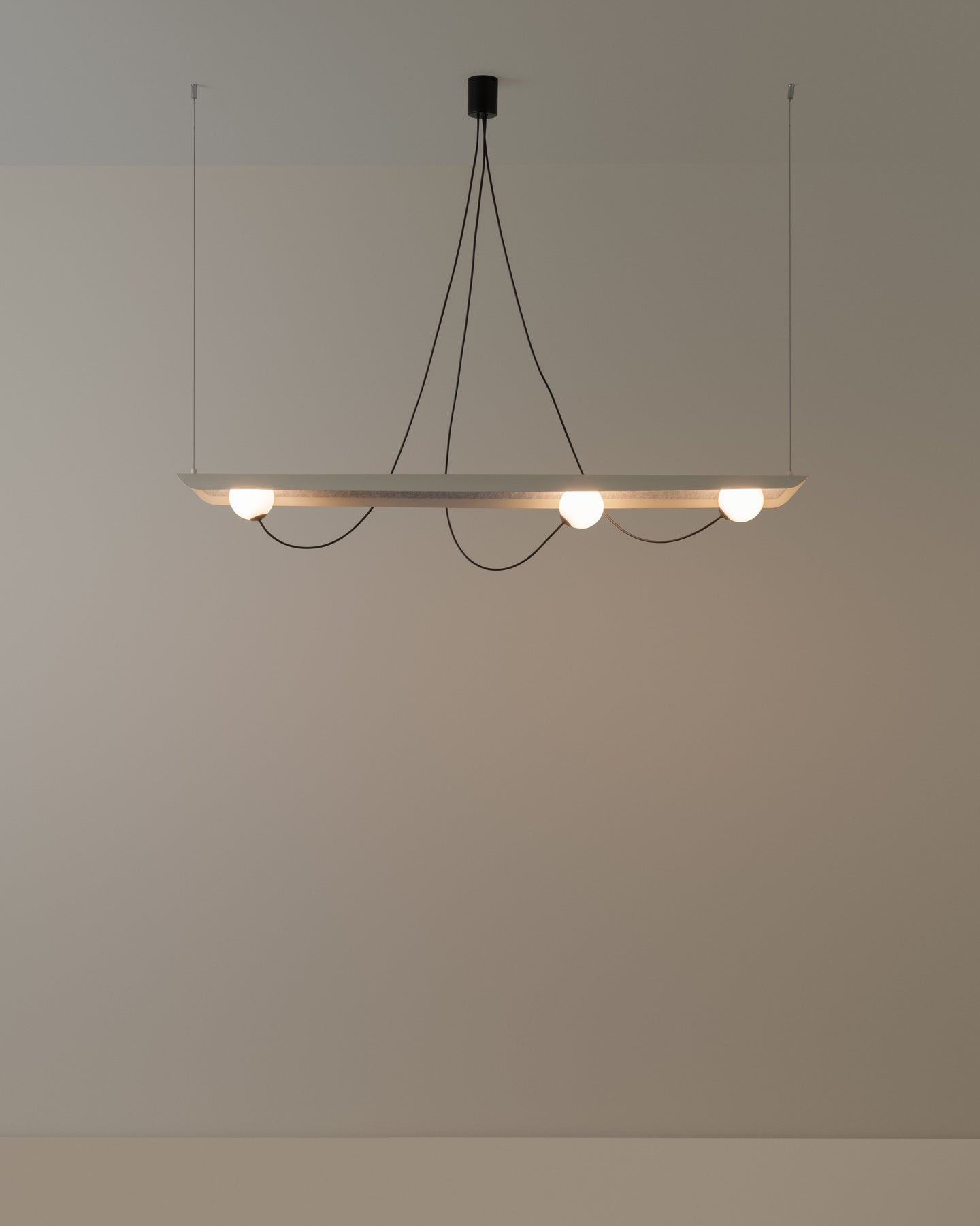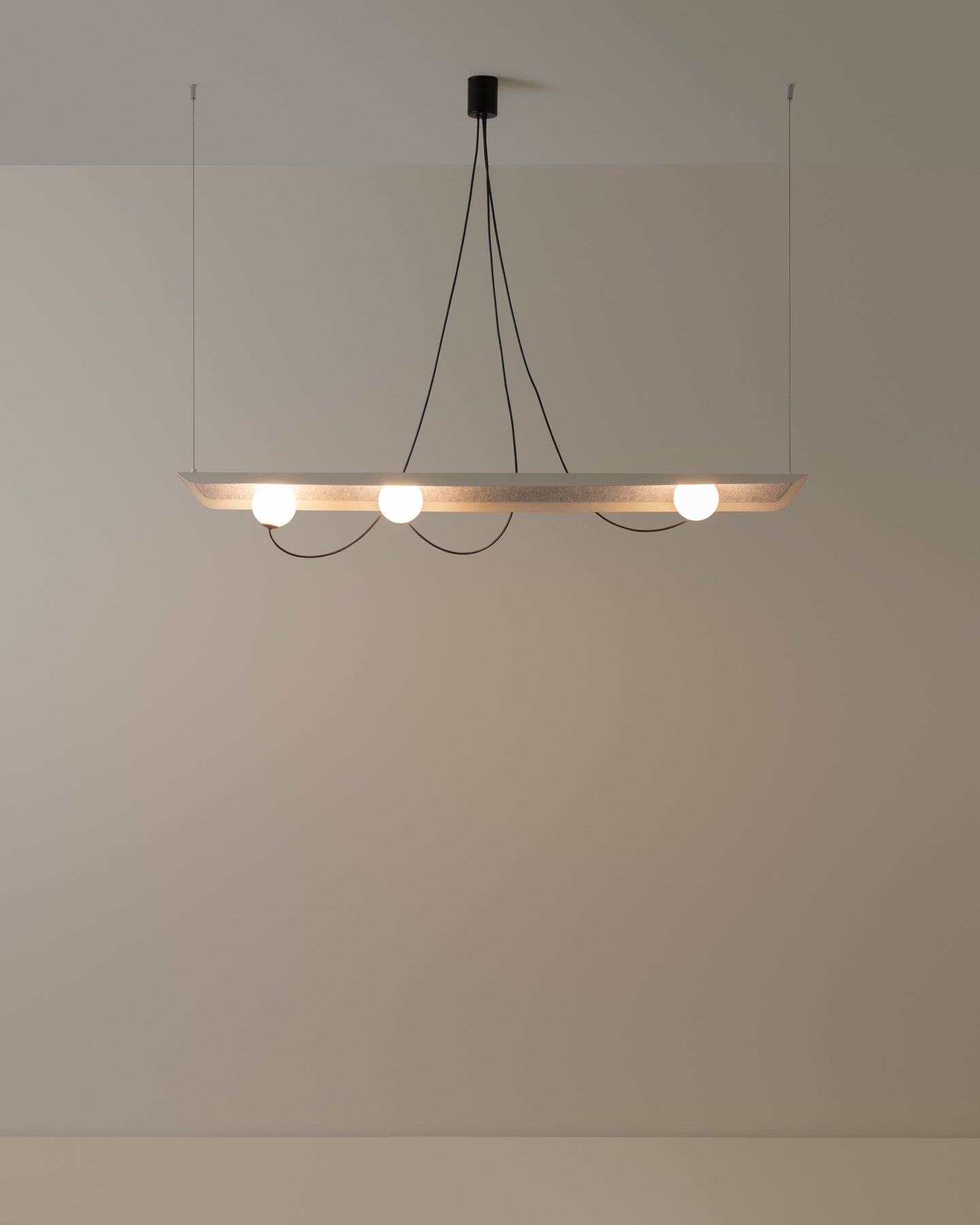 The Magnetic Balance Acoustic Linear Pendant seamlessly integrates advanced acoustic technology with minimalist design, offering both functional lighting and sound absorption in one elegant fixture. Designed to enhance modern interiors, this pendant light features a magnetic glass globe that can be repositioned along a felt-covered panel, allowing for customizable lighting effects and aesthetic flexibility. Its sleek profile and soft grey felt interior contribute to a harmonious blend of form and function, making it an ideal choice for spaces requiring both illumination and noise reduction.