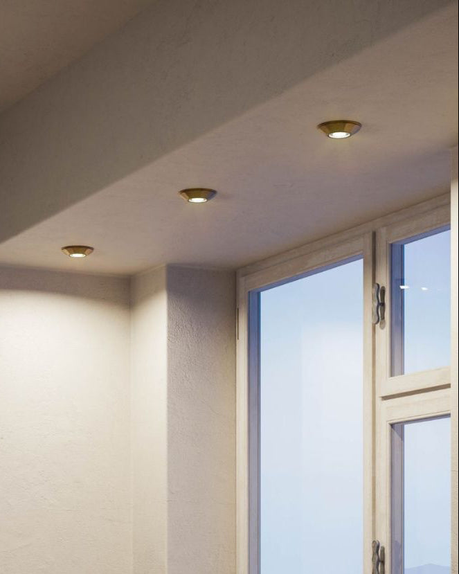 Tiny yet elegant and refined, this Italian-made flush ceiling light will beautifully illuminate kitchens, living rooms and hallways. Perfectly blending in modern interiors, it can also suit traditional or coastal homes. Available in either a simple or detailed style, this fixture is made from ceramic and antique brass.