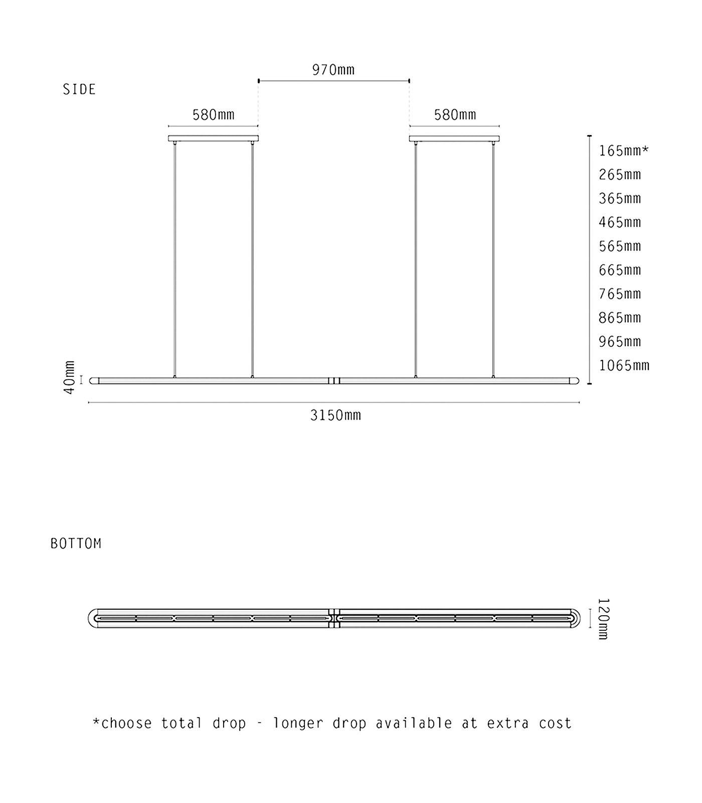 Please Note: Suspension length to be specified when ordering. Please contact customer service to specify drop length.