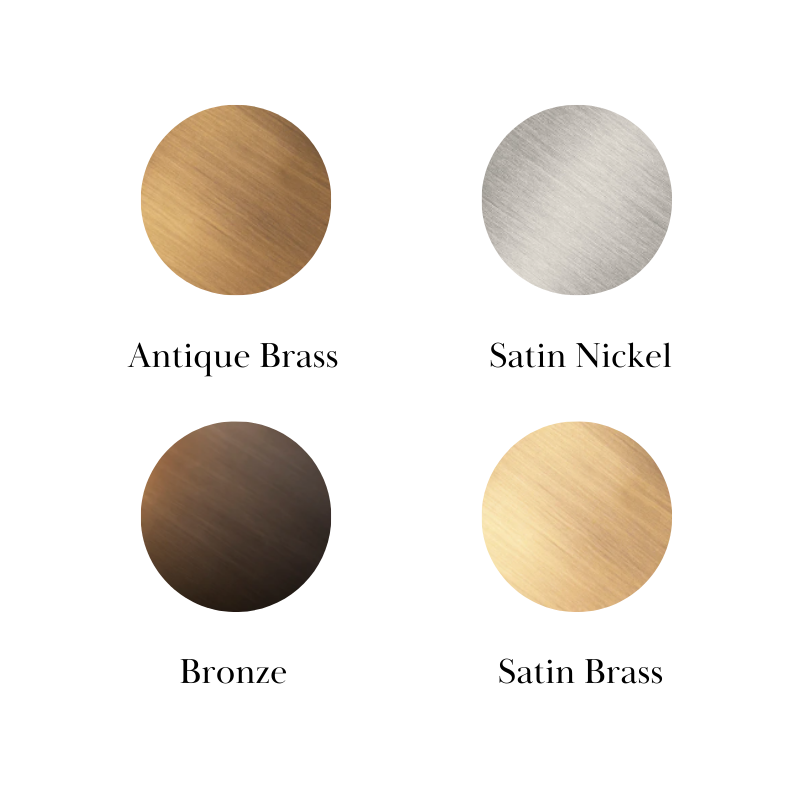 FinishesAntique Brass, Bronze, Satin Brass or Satin Nickel