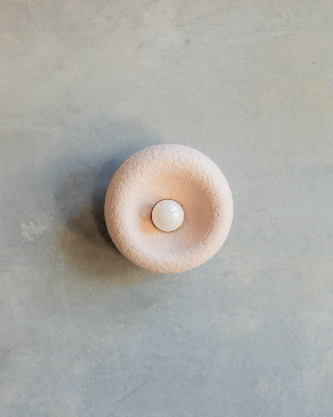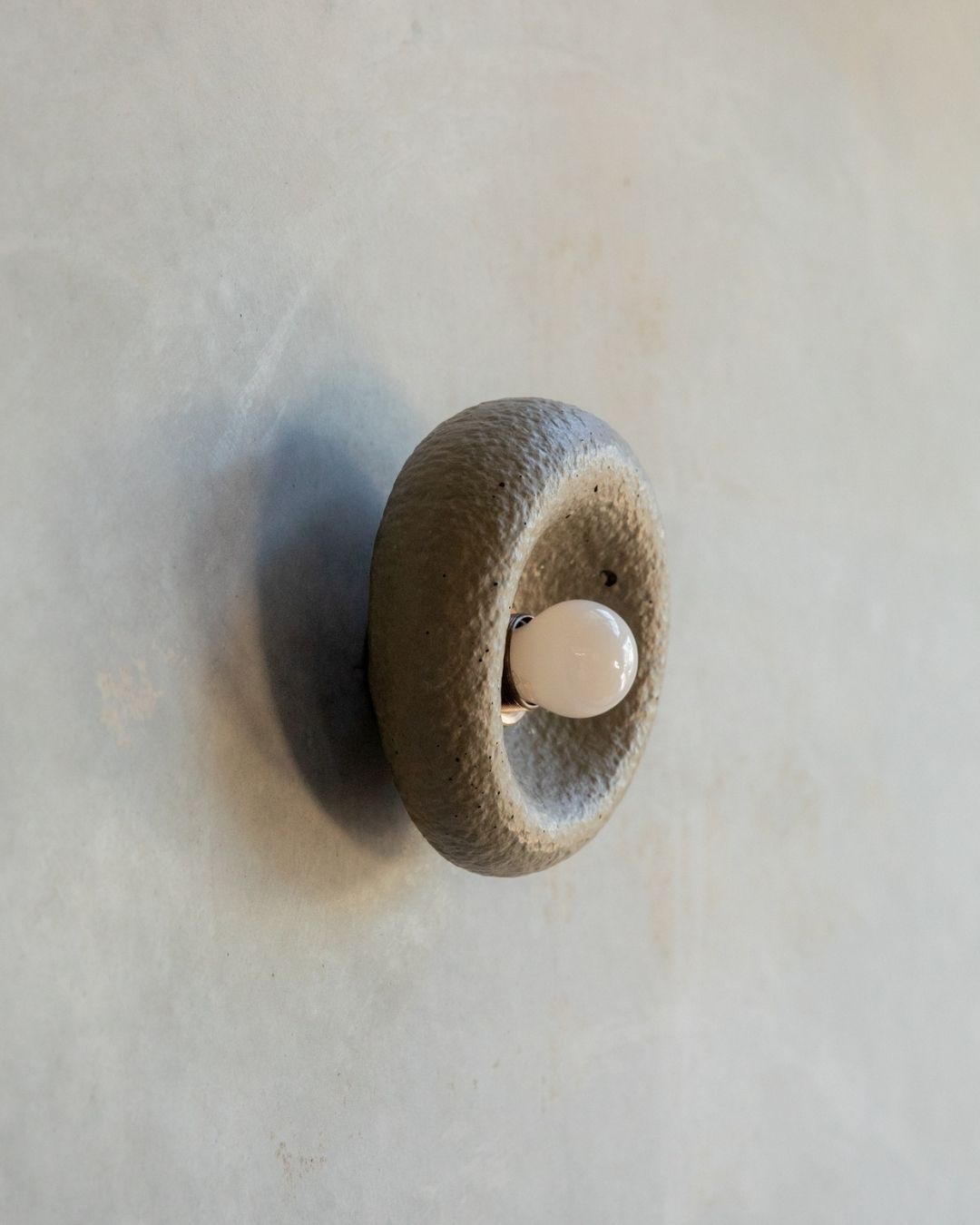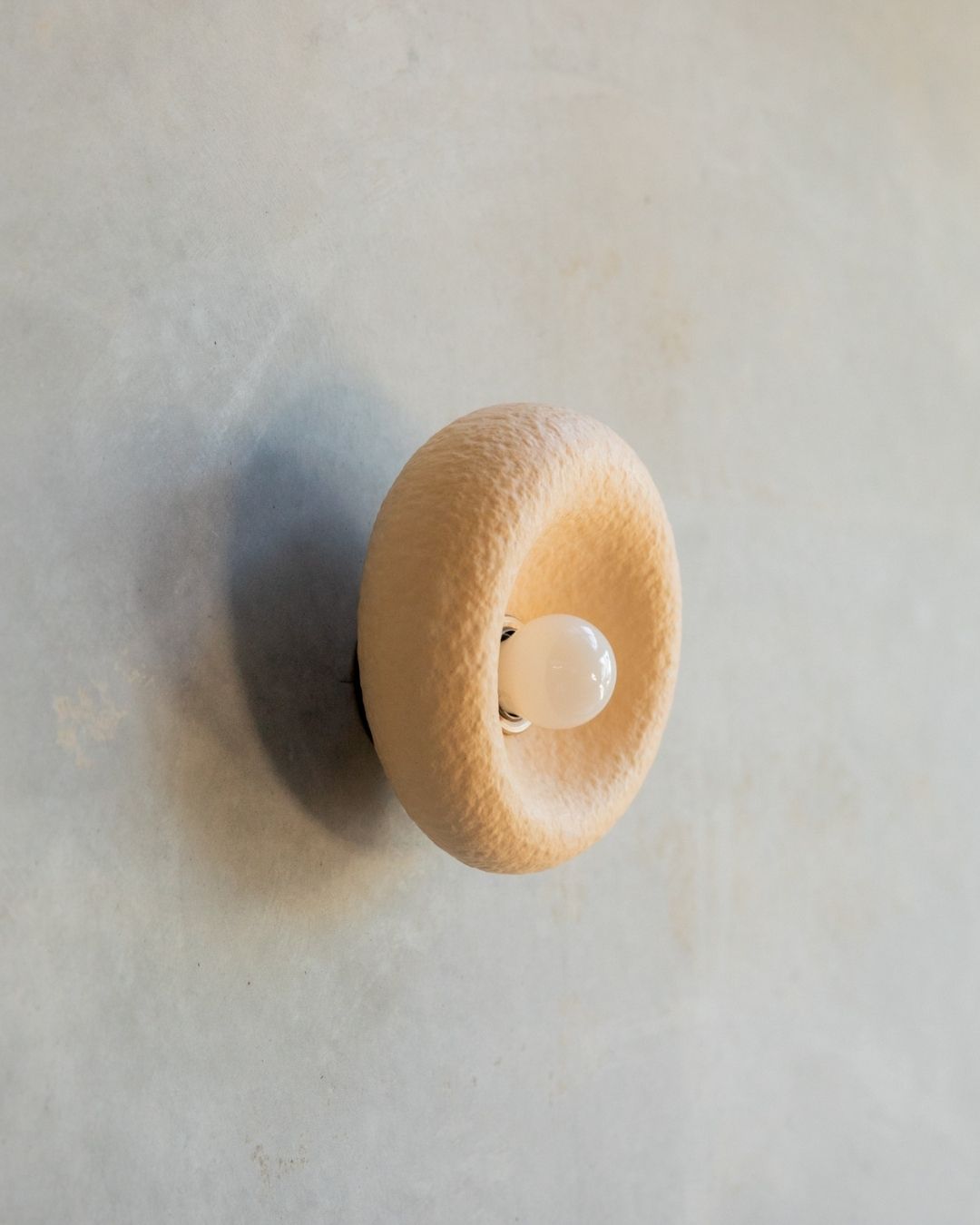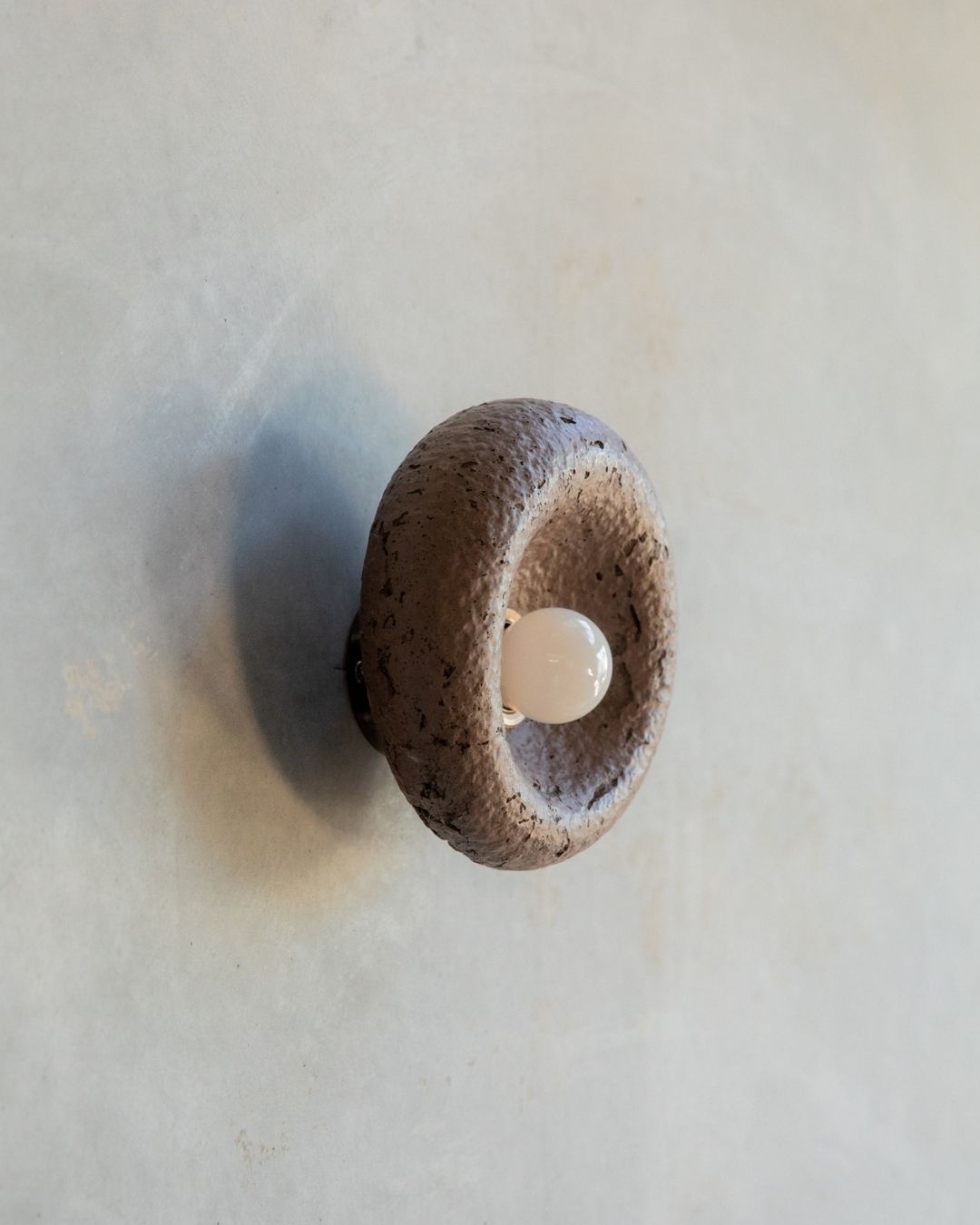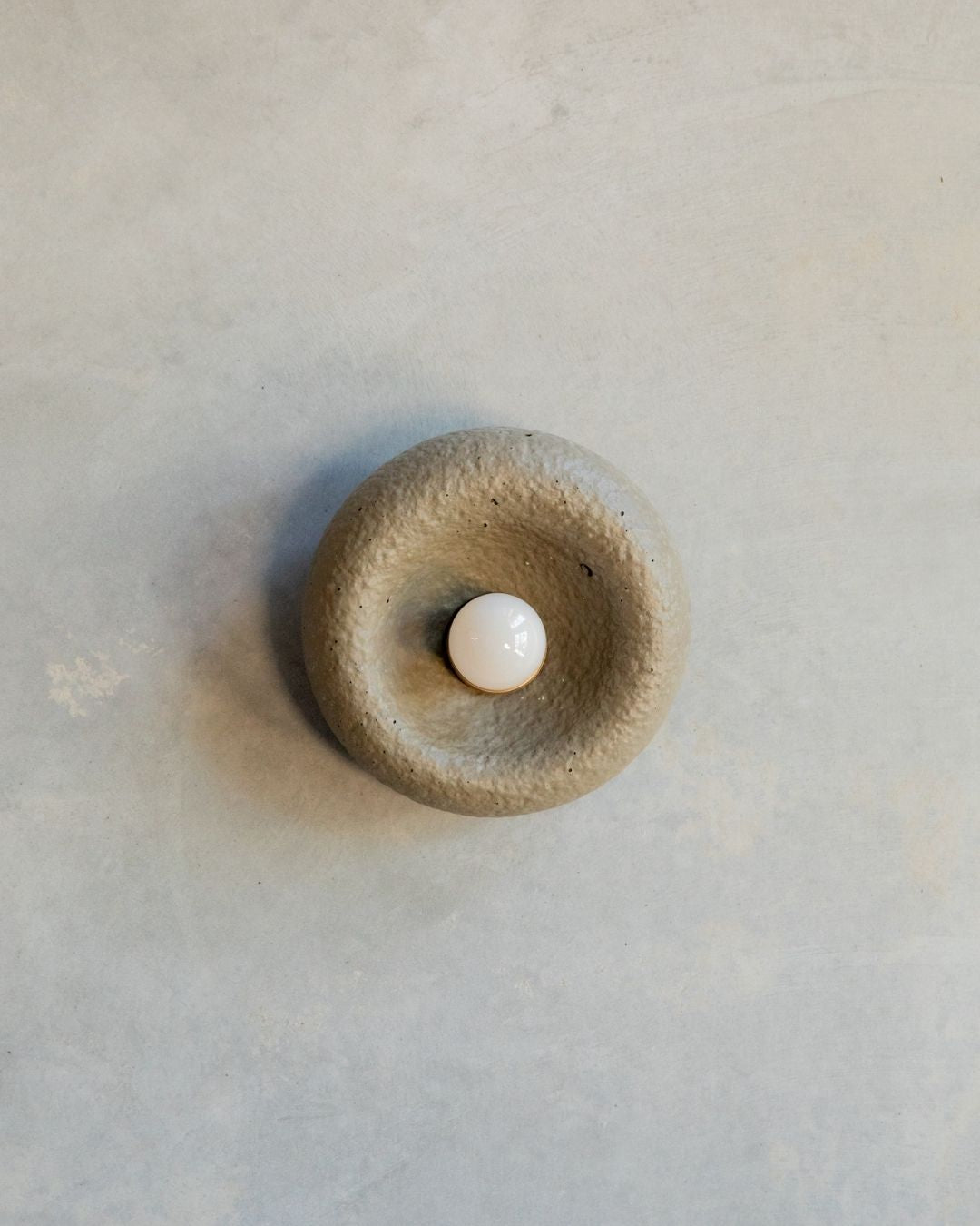 The Rounded Asymmetrical Wall Sconce is a charming fitting designed and crafted in the Northern Rivers. Featuring a rounded shape with an off-centre concave area for the light bulb, this unique sconce comes in seven shade finishes and three metal fittings finishes. Made using concrete and glass fibres, the fitting creates interest with its textured surface, ideal for children's rooms, commerical spaces and powder rooms.