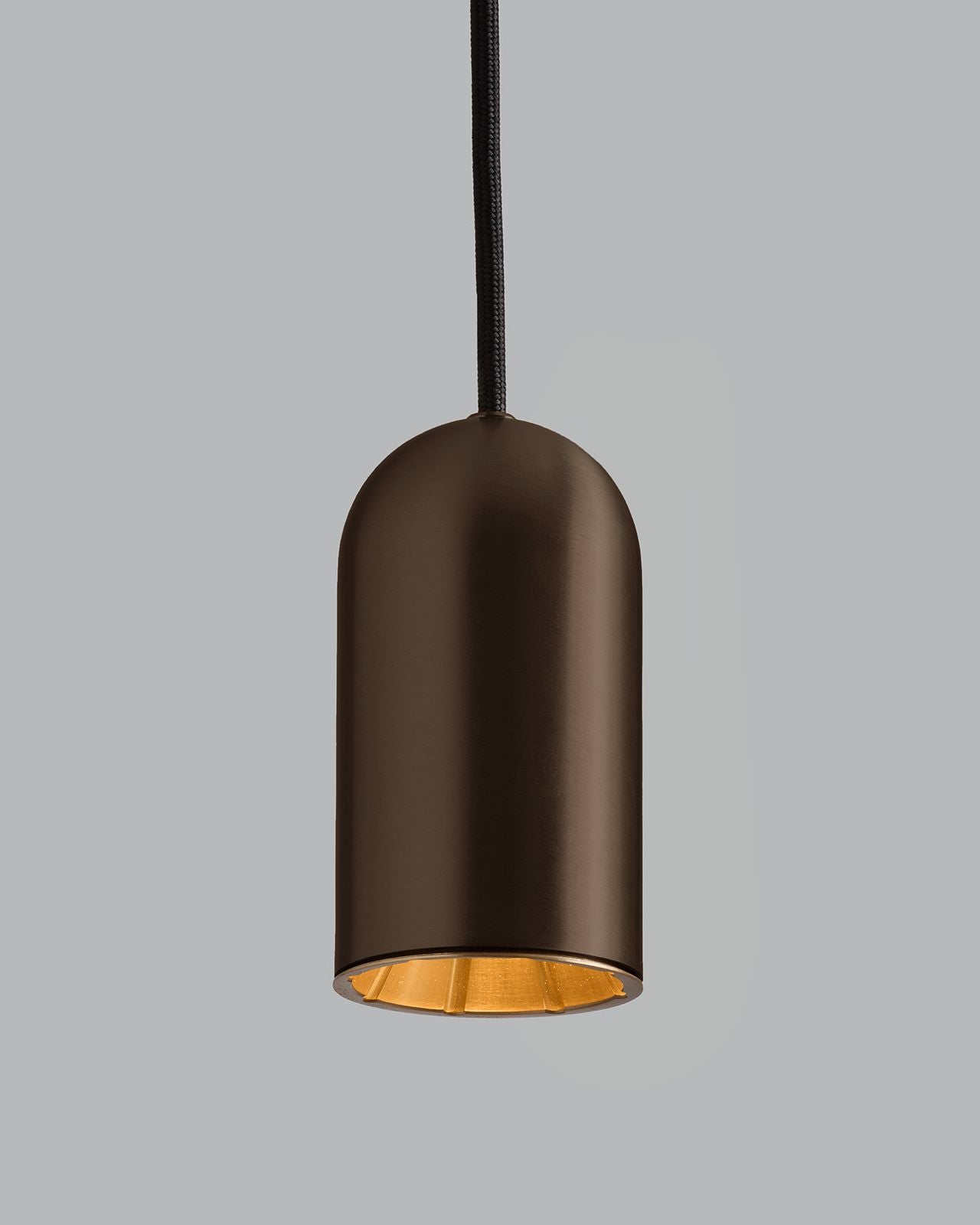 Hand-crafted in England, this pendant light reinterprets the classic dome form with clean geometry, balanced proportions and a distinctive ribbed front cap that adds subtle texture and visual depth. This fixture delivers controlled, directional illumination ideal for task and accent lighting, while its premium metal finishes bring warmth and architectural clarity to each piece.