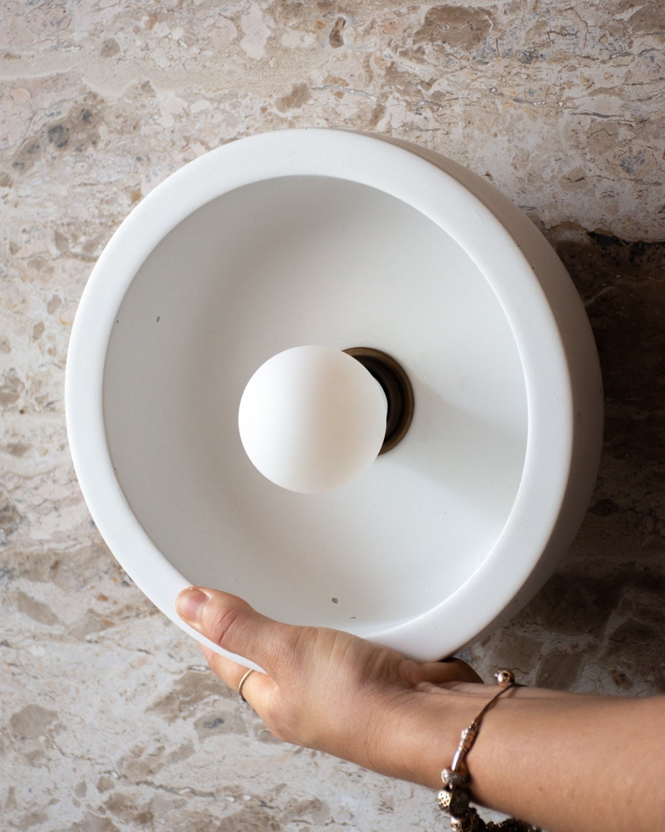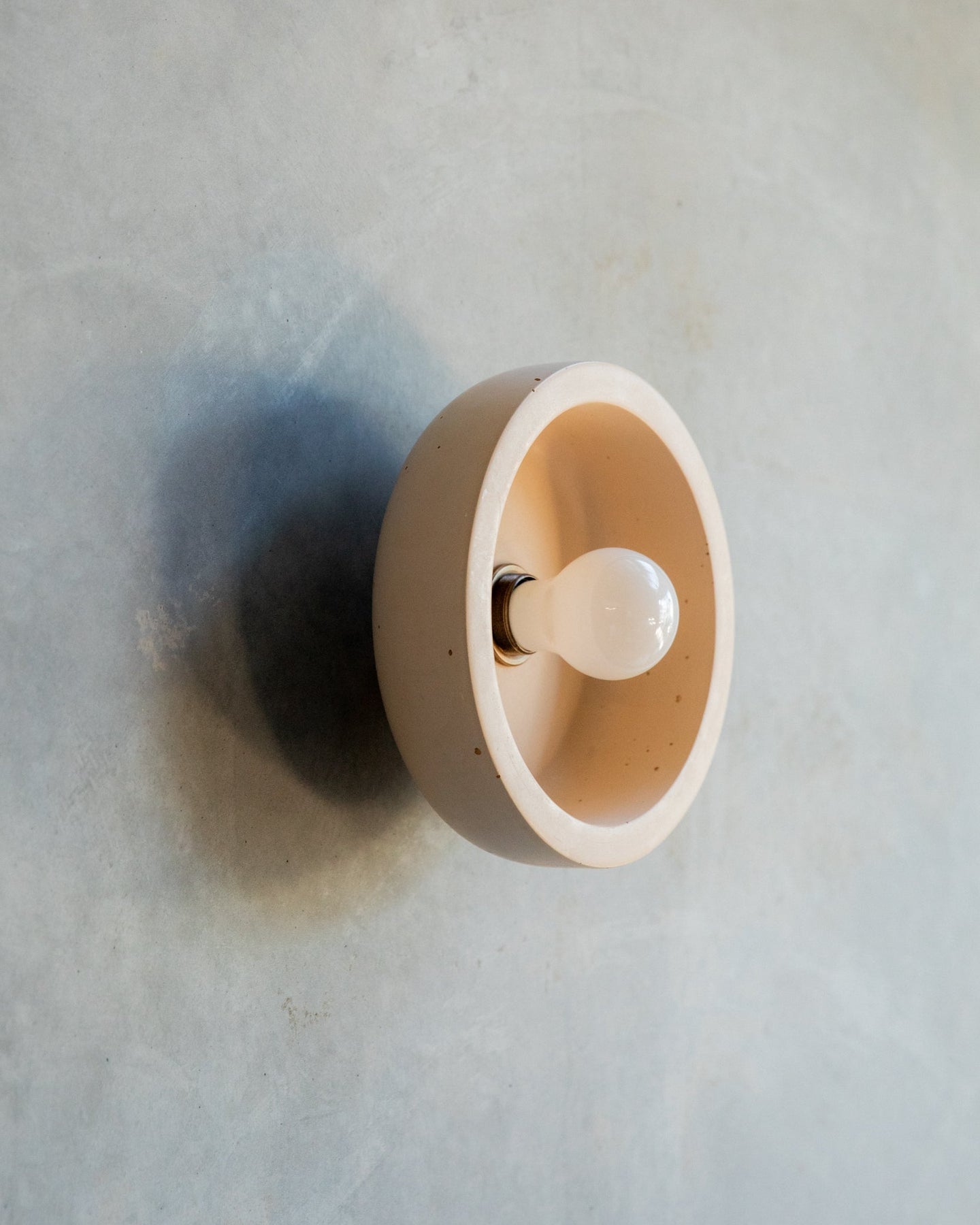 The Wide Bowl Wall Light is a concrete wall fitting available in seven finishes, each created using iron oxide pigments. Designed and crafted locally in the Northern Rivers, the fitting is hand-poured into custom moulds using an advanced blend of concrete and glass fibres, then left to cure over seven days for strength and durability.