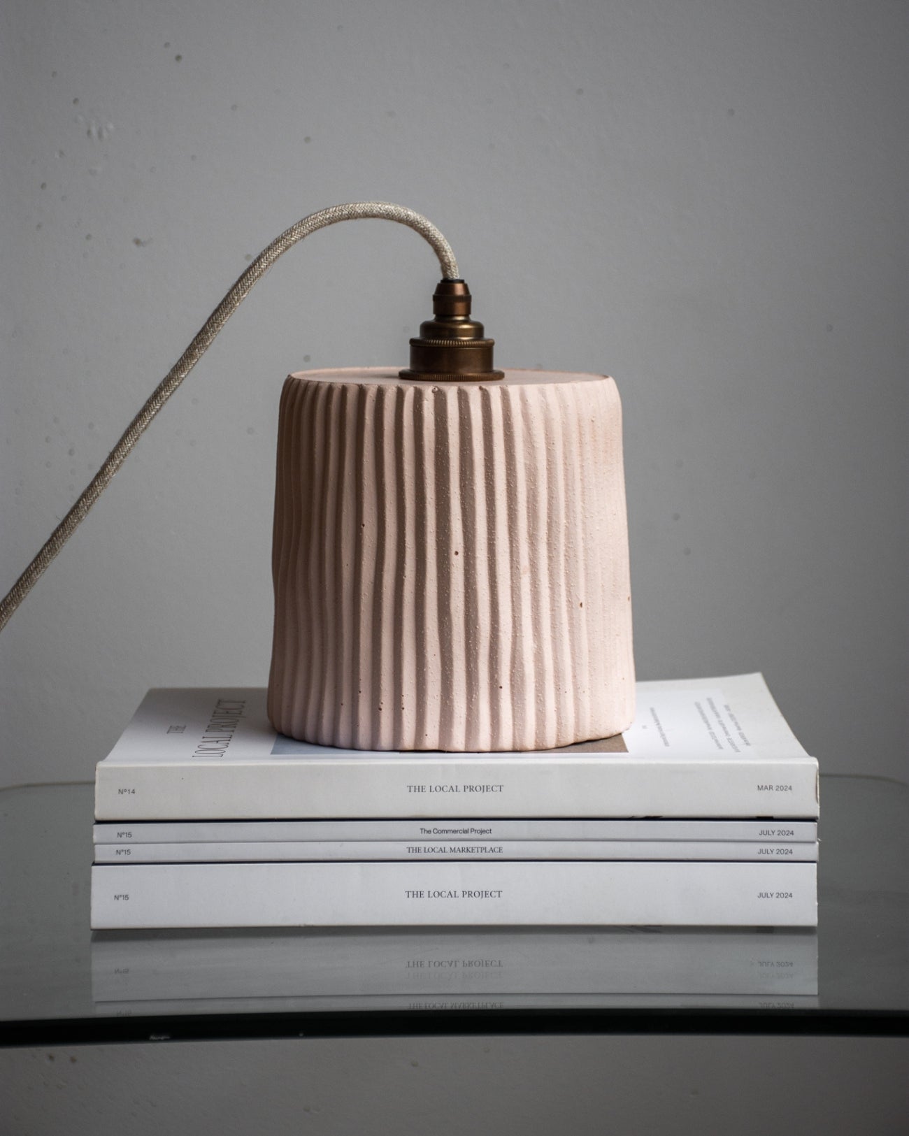 The Large Ribbed Cylindrical Concrete Pendant combines contemporary design with innovative materials and practical illumination. Handmade in the Northern Rivers, each pendant features a ribbed shade crafted from a distinctive blend of concrete, iron oxides, and glass fibres, poured into custom moulds to ensure every piece is unique. Available in seven shade finishes, four cable options, and three metal fittings, this pendant adapts effortlessly to a variety of interior styles.
