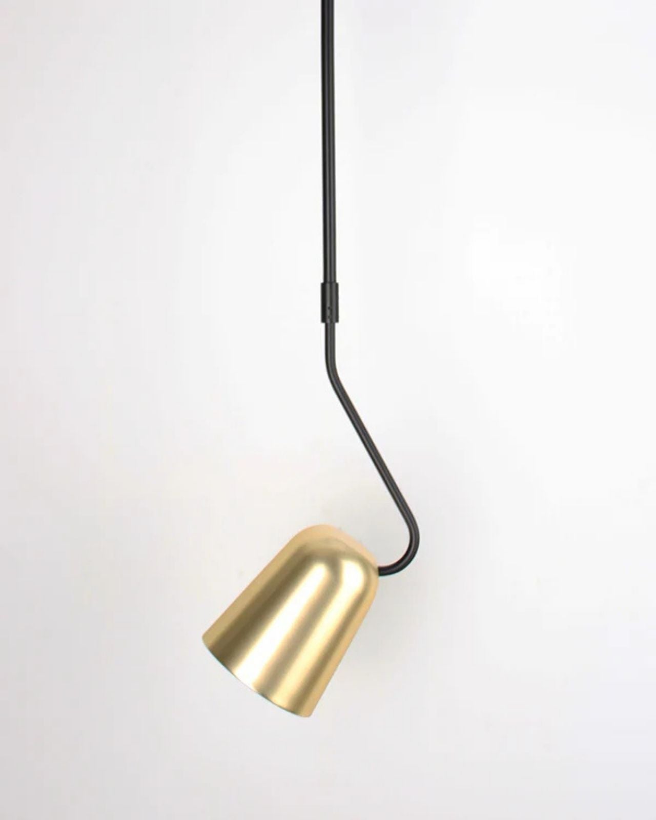 This modern adjustable pendant light is a contemporary, adaptable fitting, ideal for installation next to beds, in offices, or living rooms. This light is available with a white shade and brass suspension.