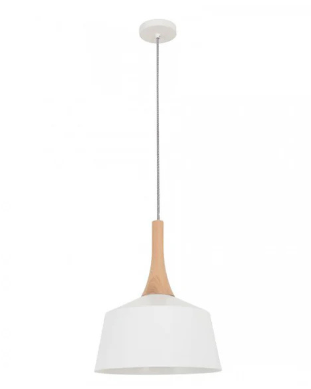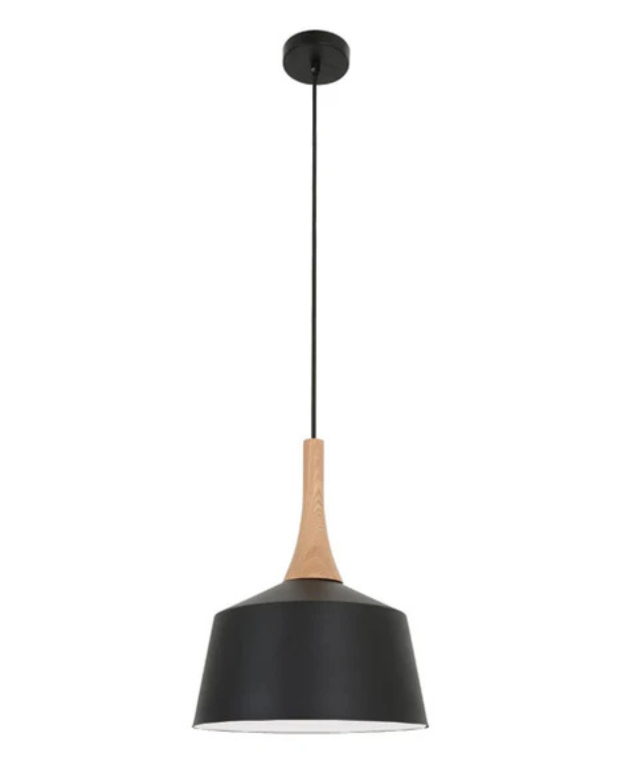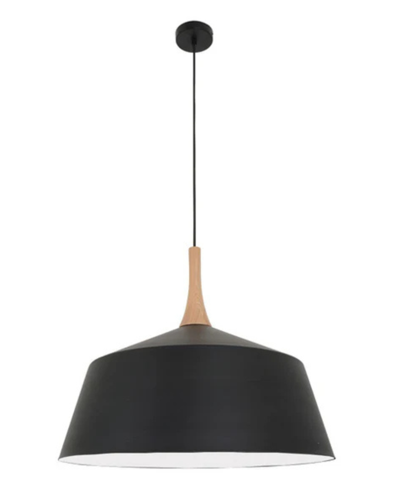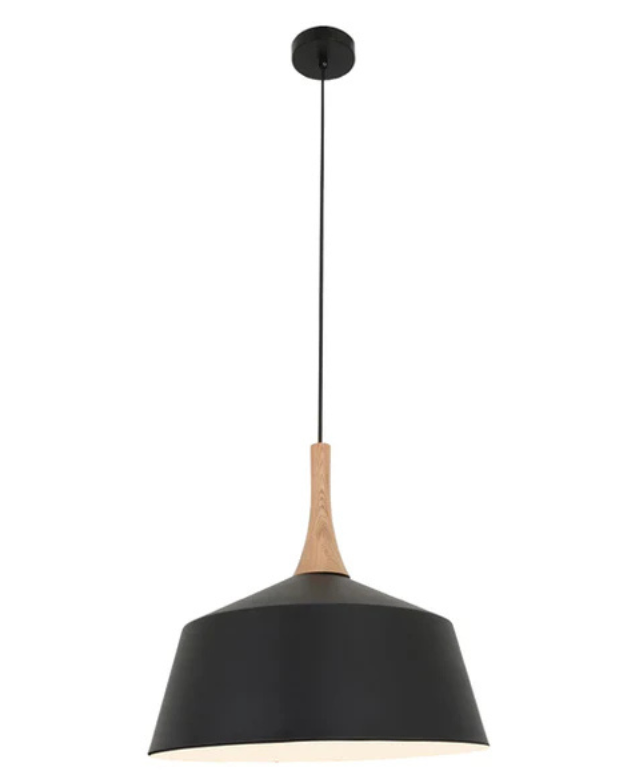 This pendant showcases elegance and minimalism with its black or white color variants and smooth steel finish complemented by a subtle touch of light timber. Its adaptability offers numerous styling possibilities, making it a great addition to any interior design. Whether used alone or in a series above a table or bench, this pendant is guaranteed to enhance any space.