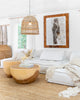 By Uniqwa Collections, when switched on or off, this pendant will make a bold statement in living rooms, dining rooms or bedrooms adding a coastal luxe and warmth to the interiors. Available in small or large sizes and handmade with handwoven rattan over a powder-coated iron frame, the shade showcases the bulb within, which allows the creation of an ambient patterned lighting feature.