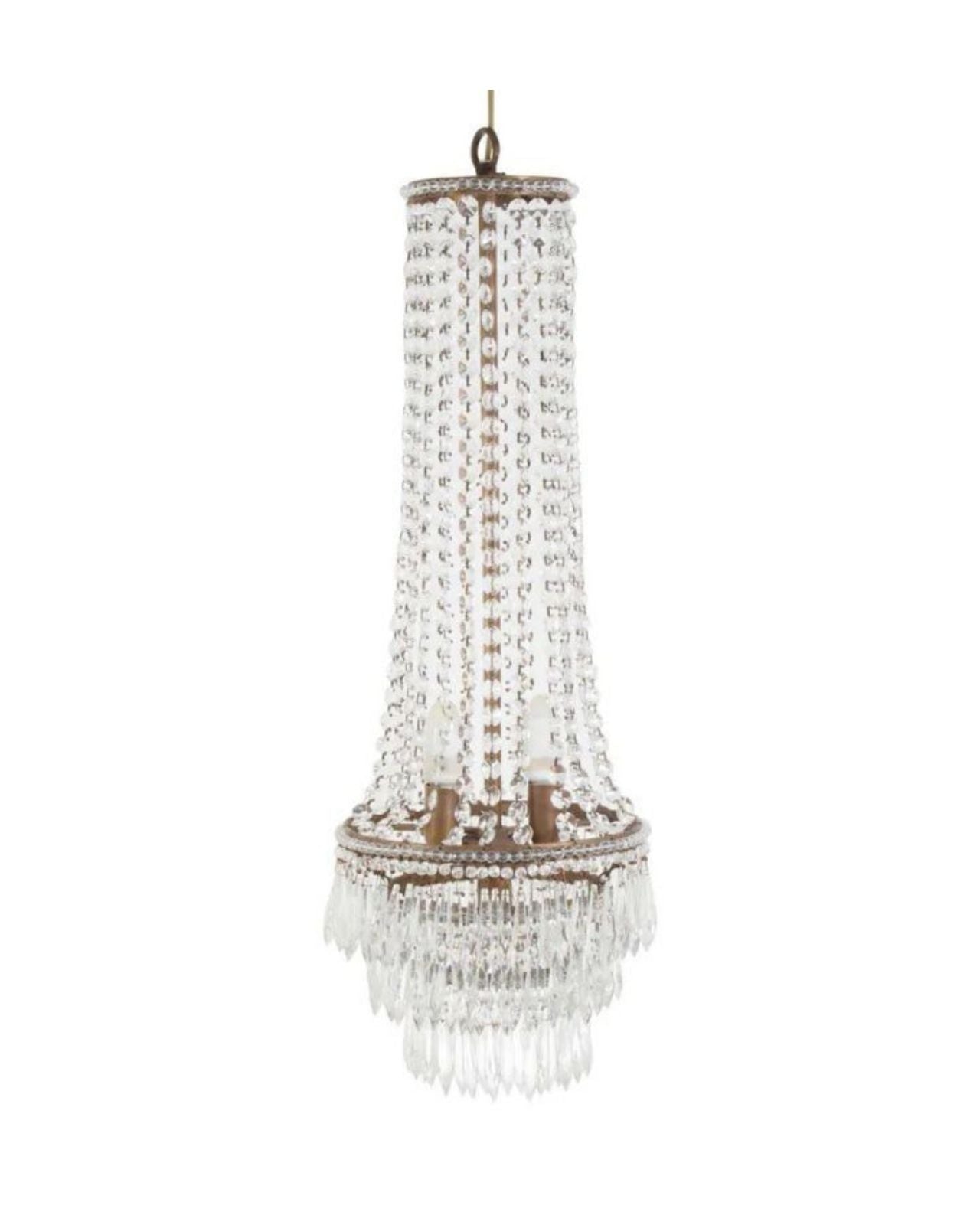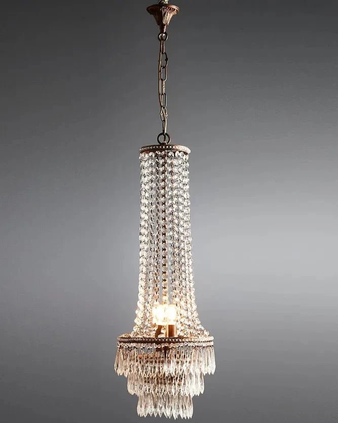 Add a refined sense of sophistication to your interior with this exquisite Empire glass chandelier. Featuring an elongated silhouette and cascading crystals, it captures and refracts light beautifully, creating a radiant focal point in any room. Crafted with precision and timeless appeal, this chandelier embodies enduring luxury a statement piece that transcends trends and enhances both classic and contemporary spaces alike.