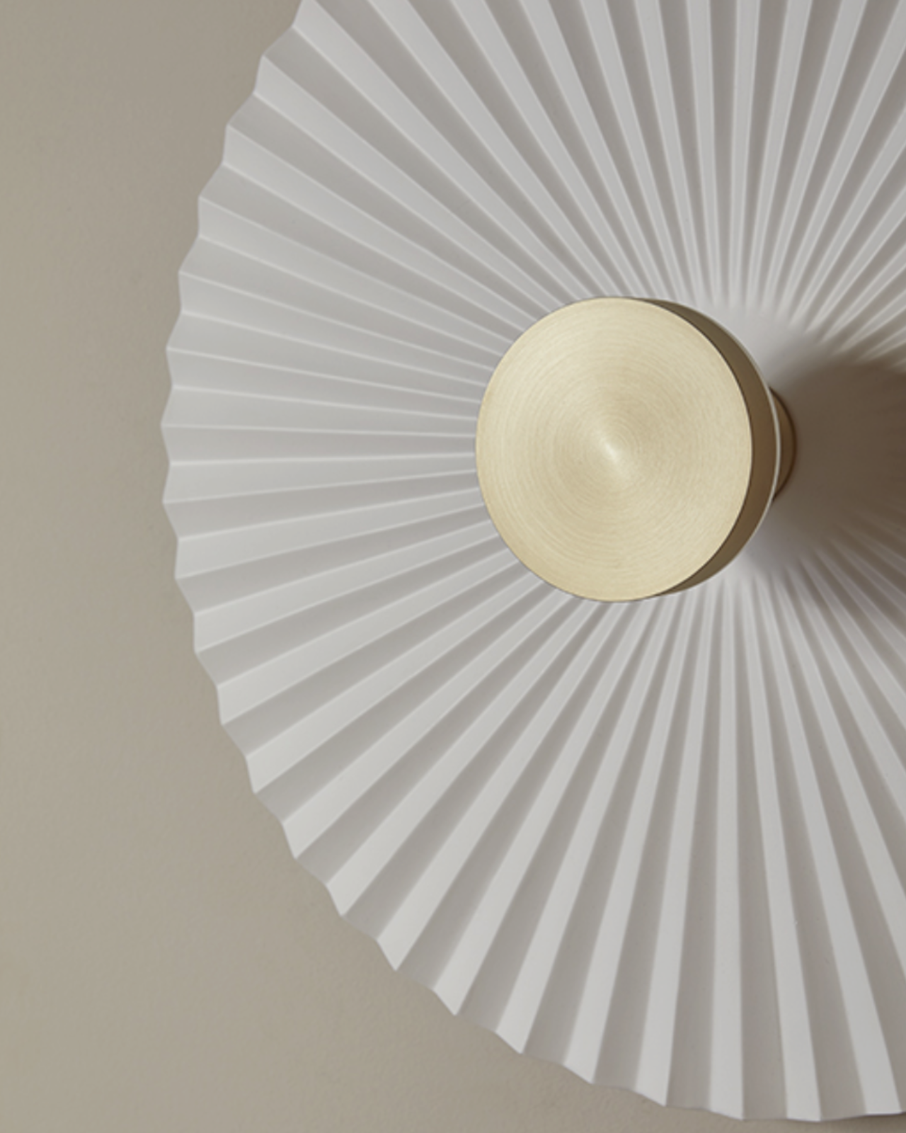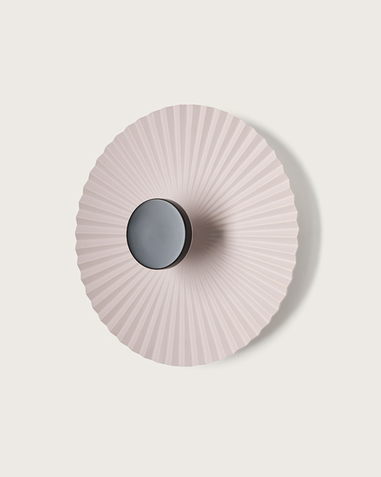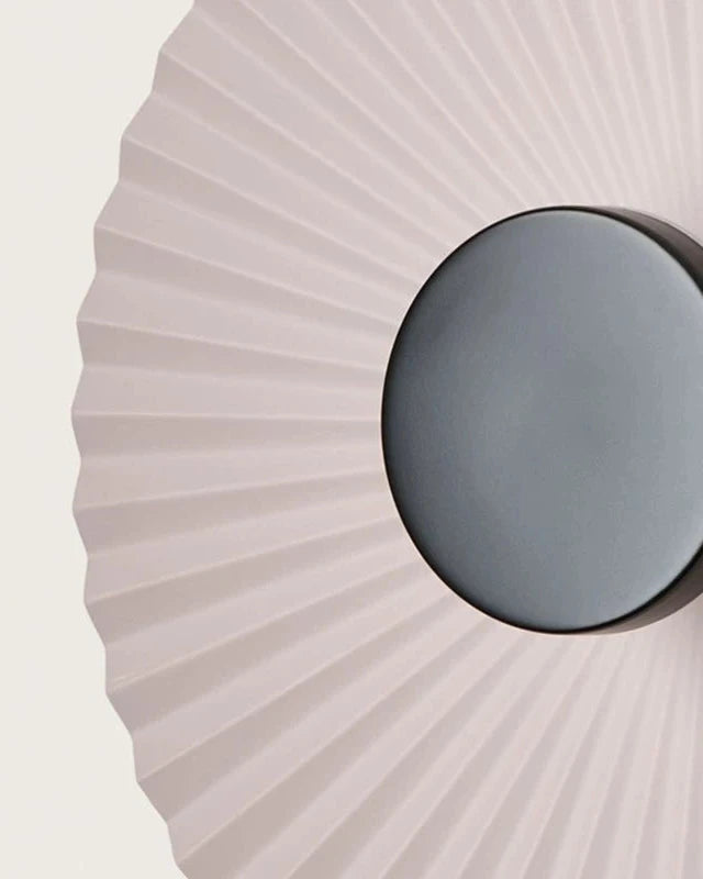 Made from resin and steel this wall light showcases a minimal yet playful design with its stunning pleated details. Featured with an integrated 3000K LED this wall light provides warm indirect light suited for adding an atmospheric glow to bedrooms, hallways or living spaces.
