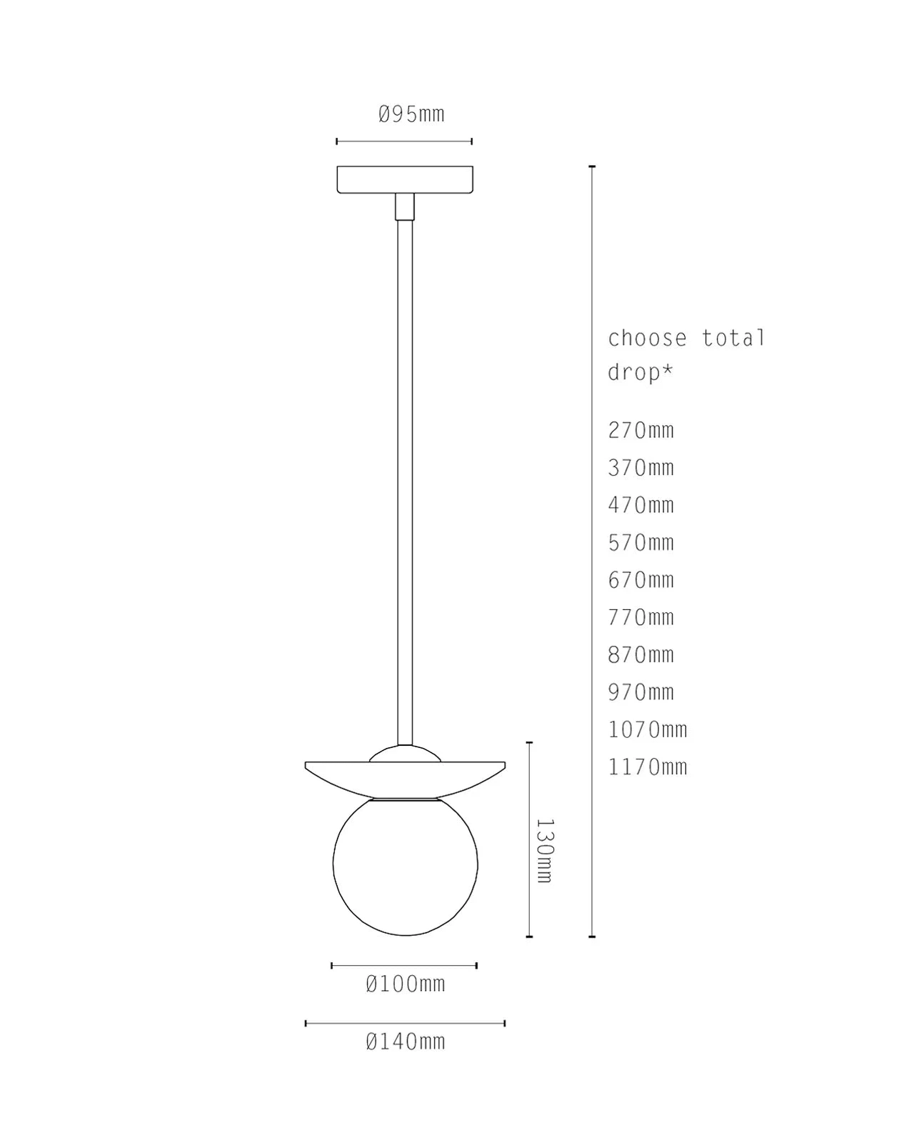 Please note* that you need to specify the desired total drop with our customer service team when choosing the drop rod suspension option, at 100mm increments from 270mm to 1170mm.