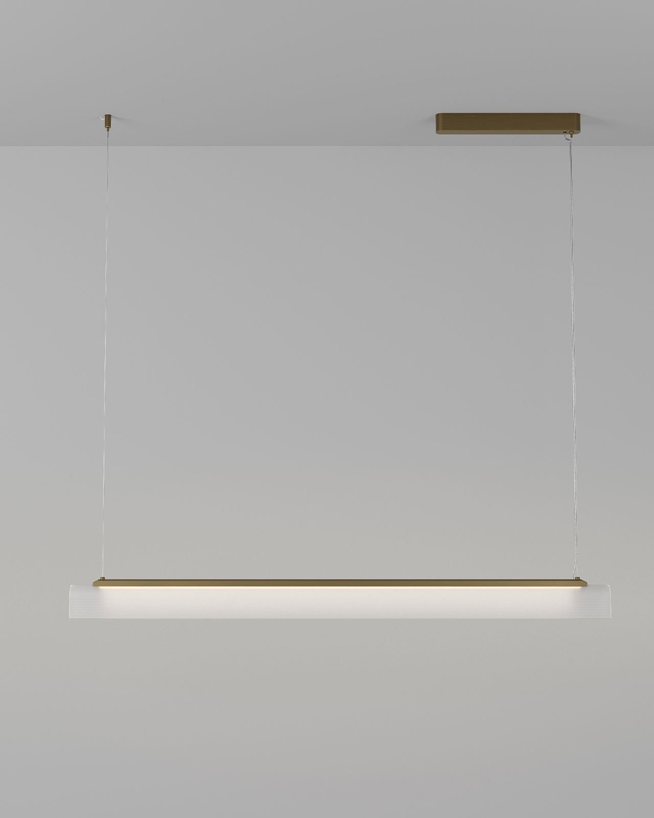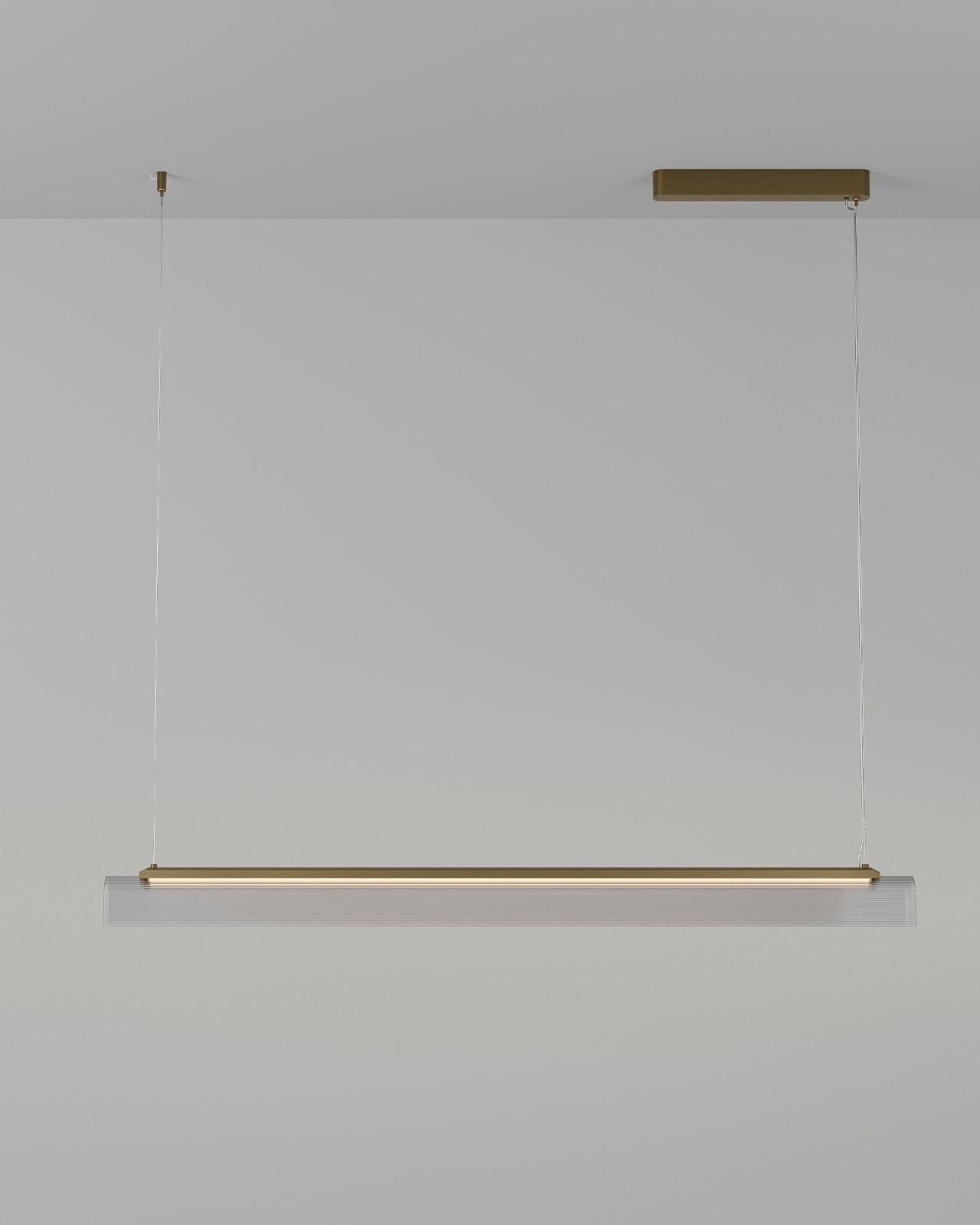 The Curved Glass Linear Pendant pairs a structured metal silhouette with a delicate, hand-slumped fluted glass shade. Available in Old Brass or Iron finishes, with a ribbed borosilicate glass shade in clear or frosted options, the design introduces subtle texture and depth while maintaining a minimalist profile. Ideal for long dining tables, kitchen islands, or commercial applications, this pendant delivers even, directional illumination with a sleek, linear aesthetic, making it a versatile solution for both residential and professional interiors.