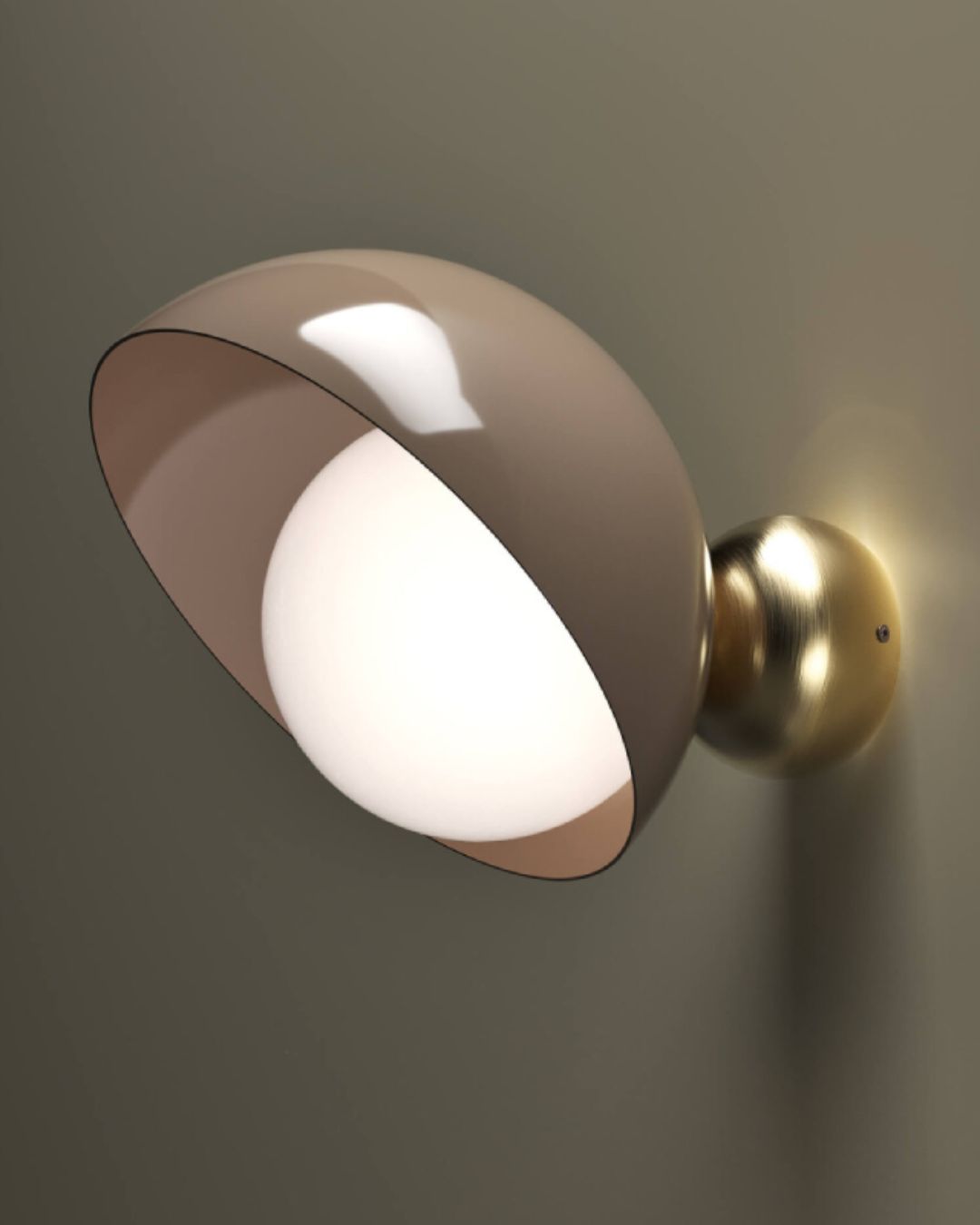 This wall light evokes the beautiful glow of a sunrise, offering a warm and sophisticated touch to modern, eclectic, or contemporary interiors. This Italian-made wall light, designed by Virginia Cei, features a brushed gold metal sphere supporting a beautifully tilted dome. Choose from a range of stunning finishes including ancient white, yellow sunrise, baby blue, baby pink, and cappuccino. Ideal for living rooms, bedrooms, entrance halls, or corridors, this functional and decorative fixture will elevate any space.