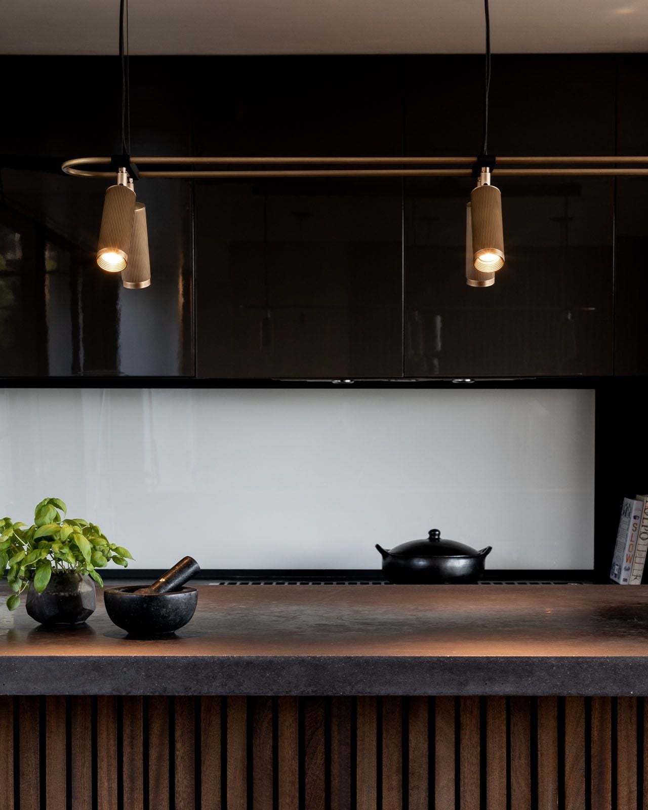 Modern Adjustable 6lt Linear Pendant - Suspension Wire / Antique Brass