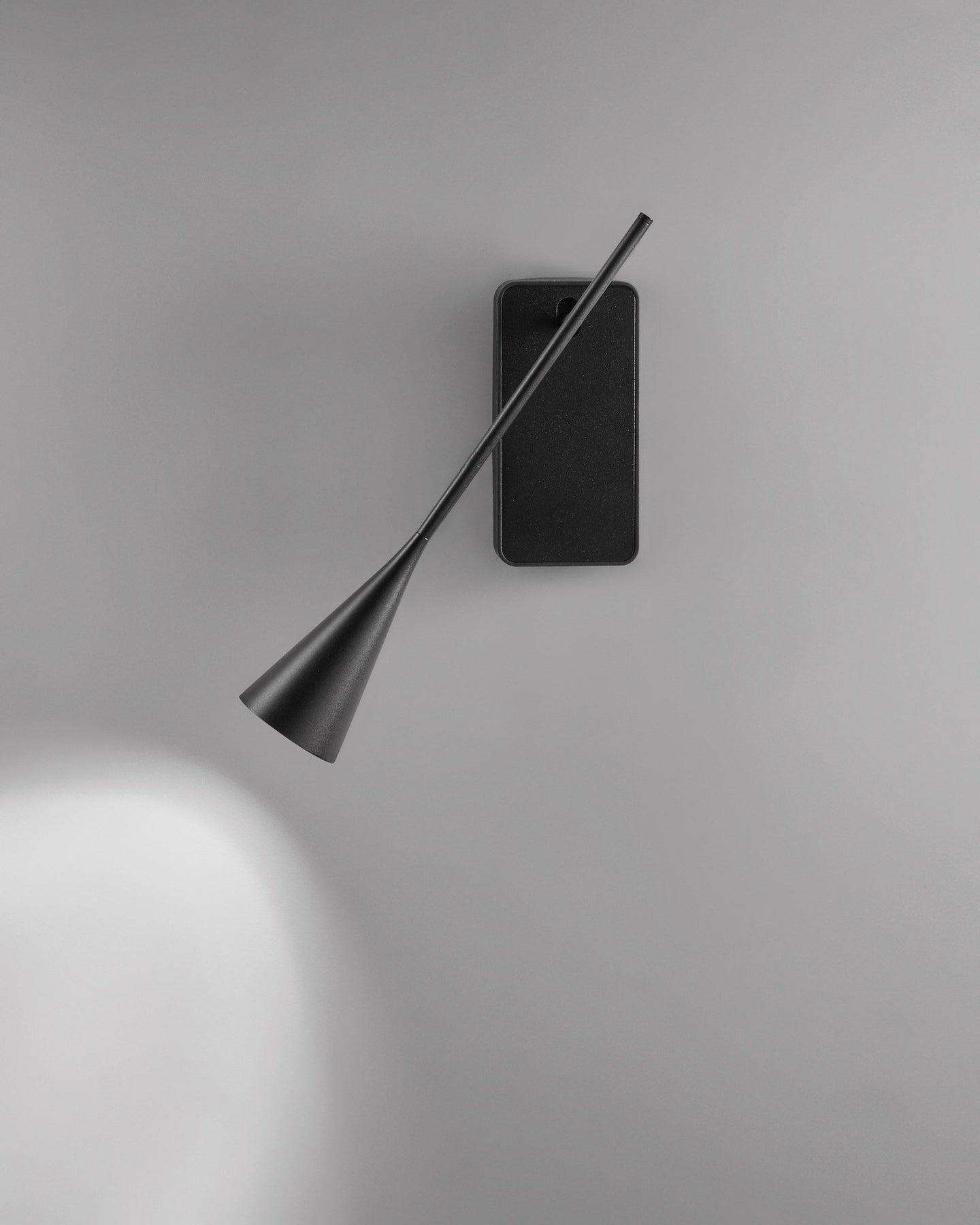 Made in Spain, this wall light with a Black Ebony finish will perfectly suit your lighting needs in your bedroom or reading light bringing a modern and contemporary style to your interior. This fixture features an adjustable aluminium conical shade and an integrated LED projecting a welcoming warm light downwards. Elegant and discreet, this versatile lamp is dimmable and has three options: simple, with built-in switch, with built-in switch and USB port.