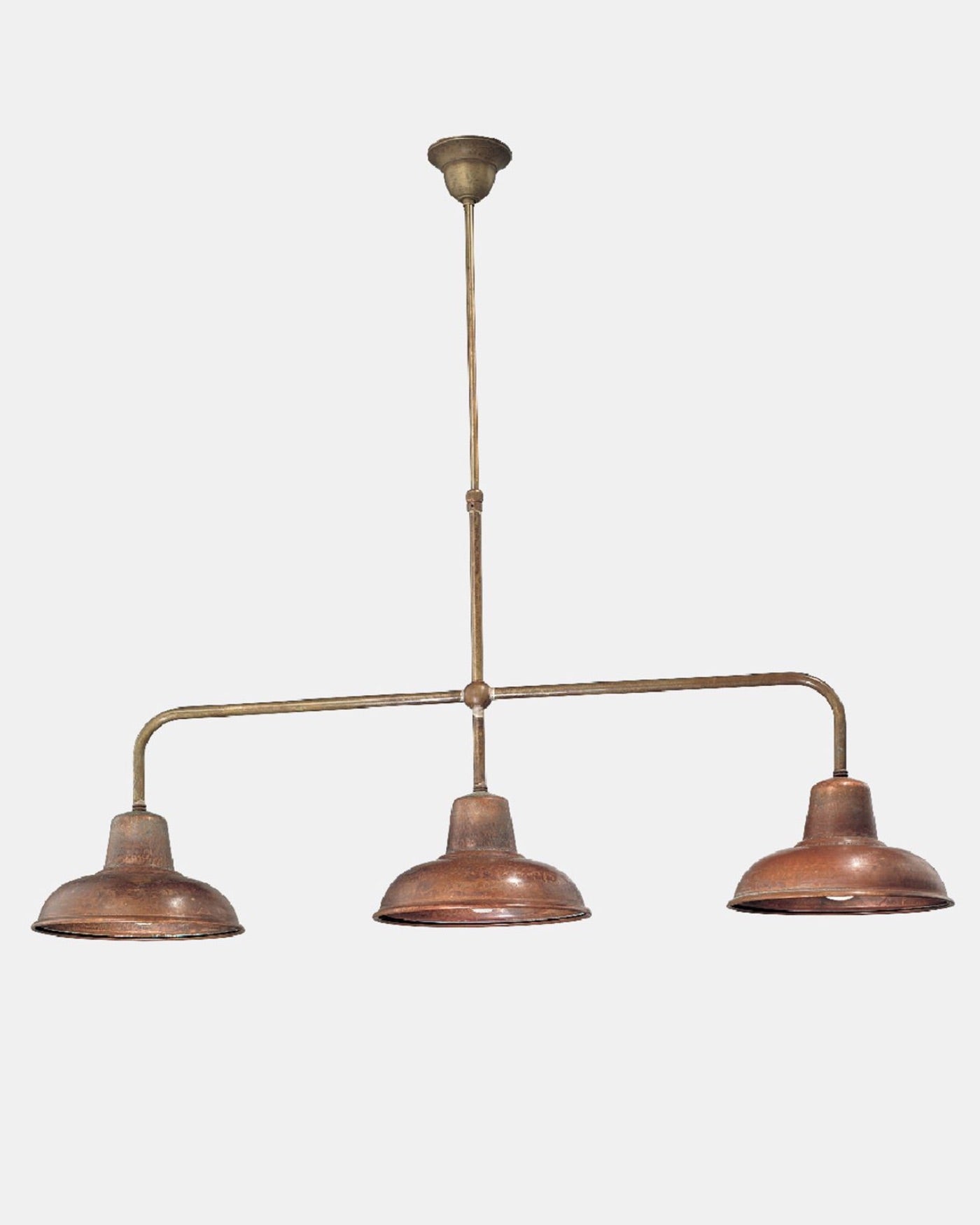 Part of a range of stunning Italian lights featuring antiqued copper shades with an antiqued brass frame, this charming pendant light showcases aesthetic characteristics of old lights of ancient times and a suggestive call back to plain art and to rustic modernity.