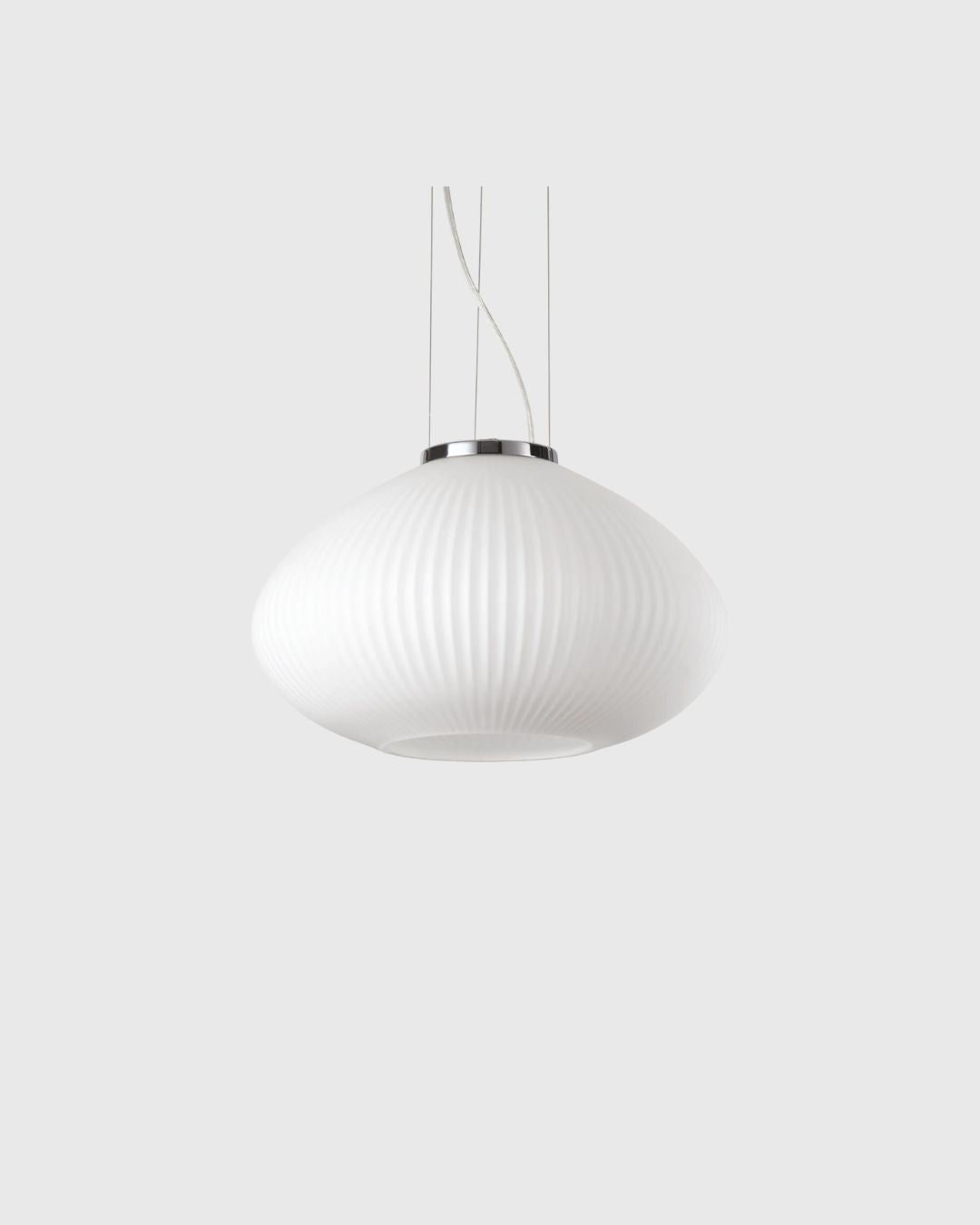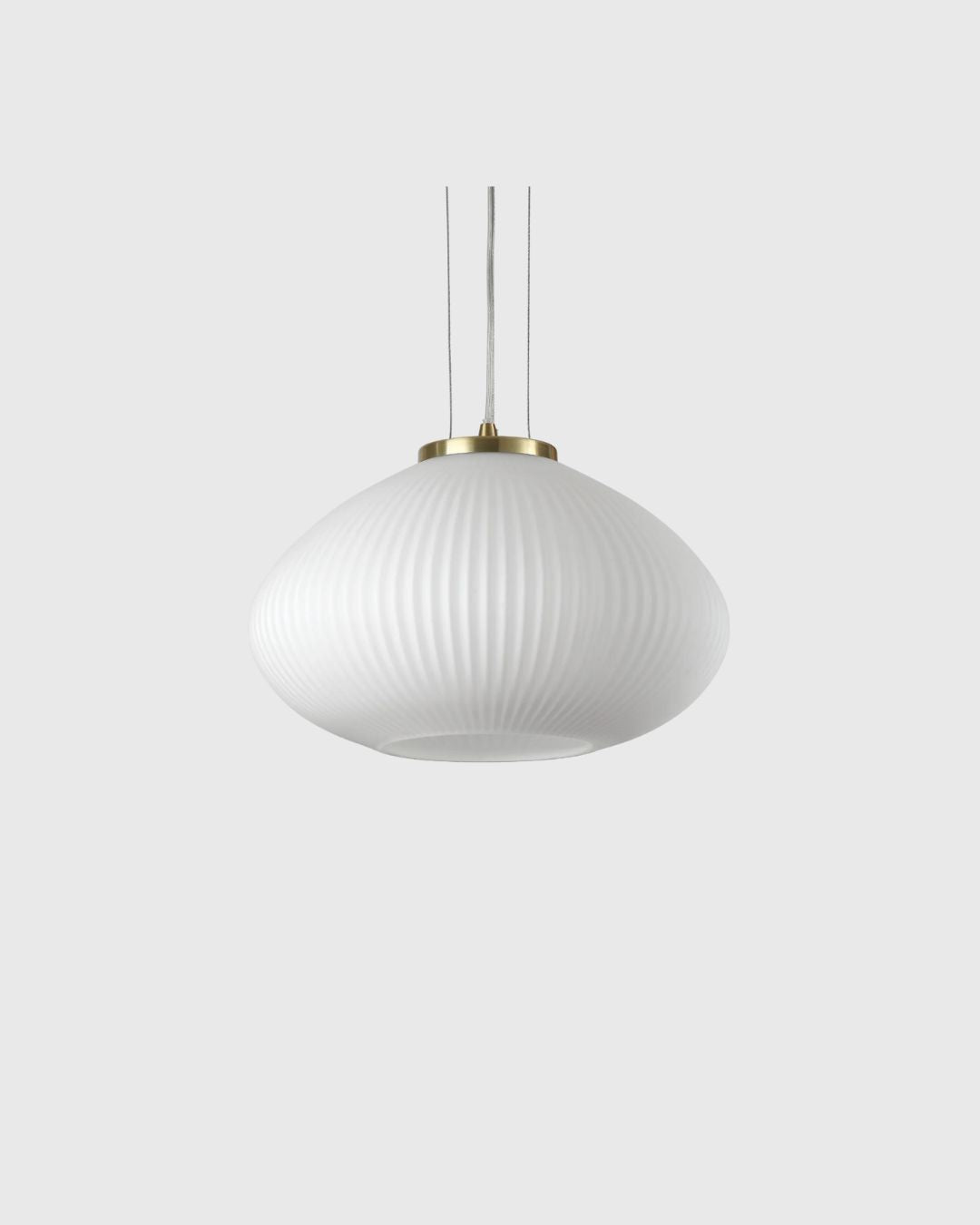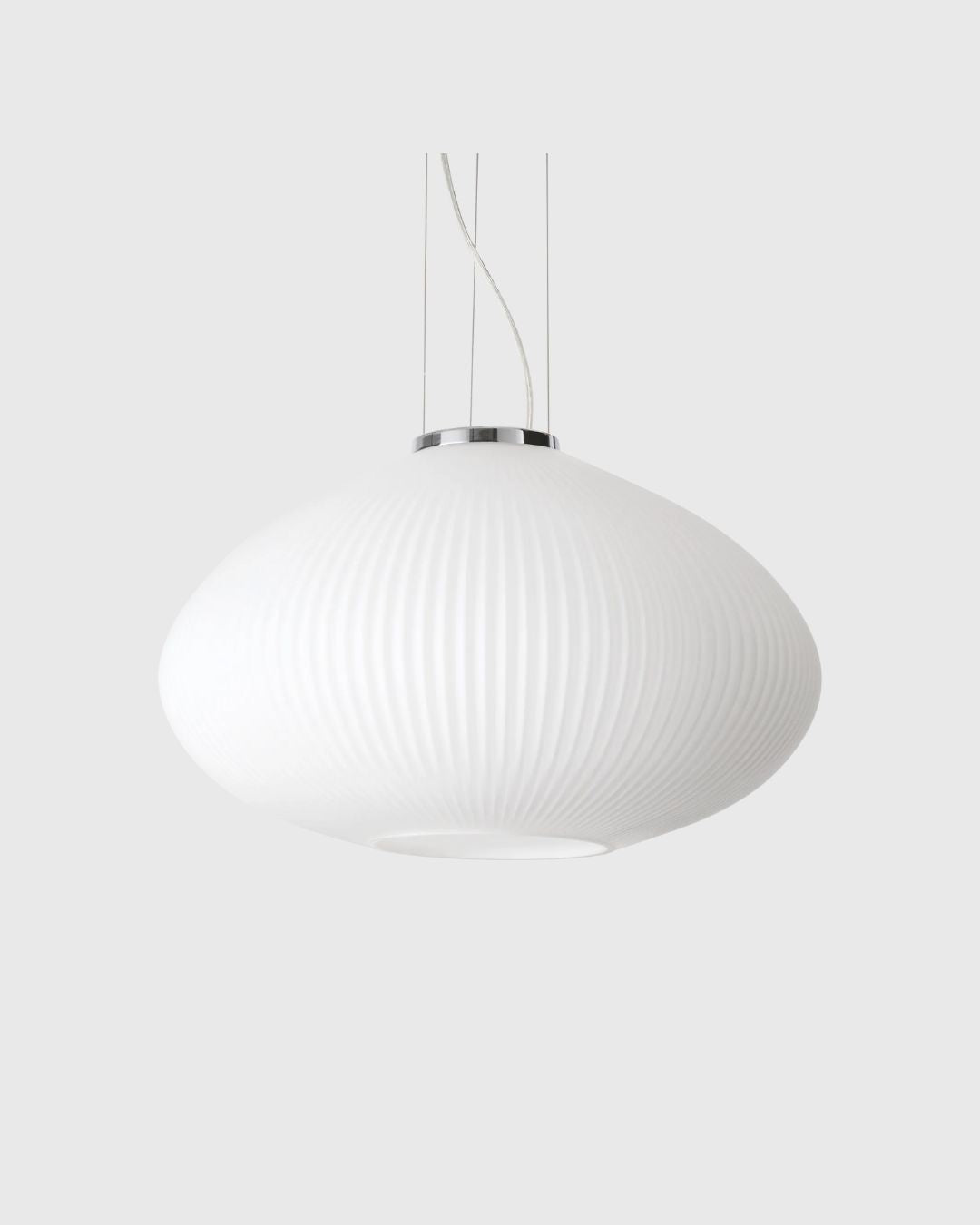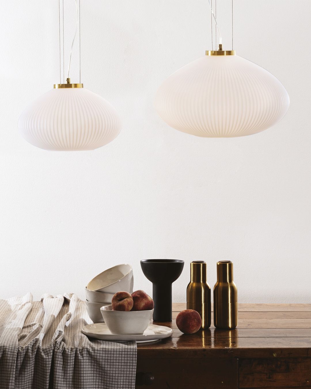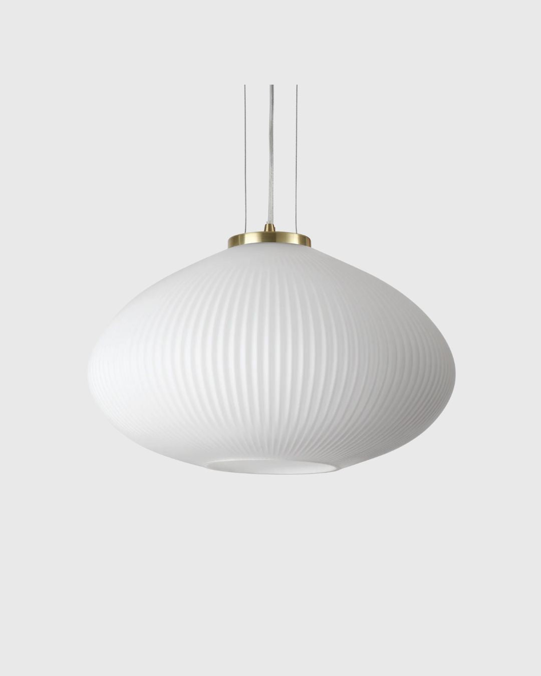 Inspired by the organic shapes of sea urchins, this pendant features a white opal opaque glass shade with a decorative pleated pattern. Diffusing a gentle and warm light, this fixture creates a cosy atmosphere and adds a touch of coastal charm to living rooms, dining rooms or kitchens. With brass or chrome metal details, this elegant fitting is available in two sizes and the height is adjustable to suit any interior setting.