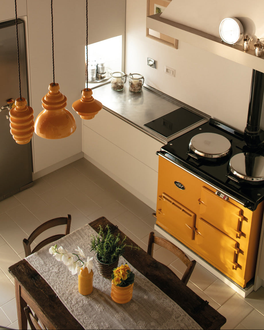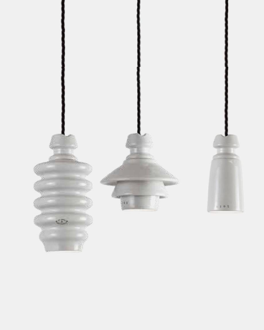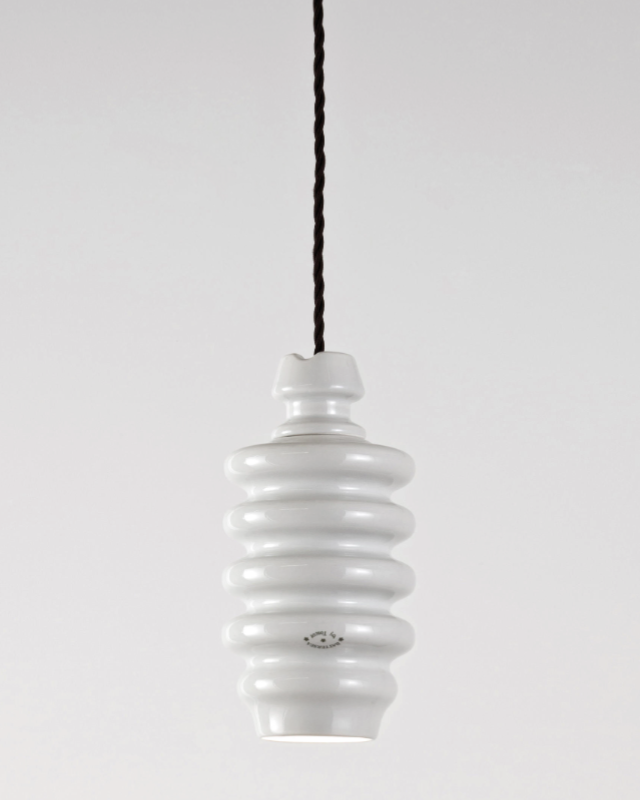 The Tuscan ceramic geometric pendant features three geometric styles each drawing inspiration from the electric isolators of the early 19th century. Each pendant is handmade in Italy from slip-cast ceramic with careful attention to detail and glaze colouring. This Italian design will become a statement piece installed singularly or grouped above a kitchen island or dining area.
