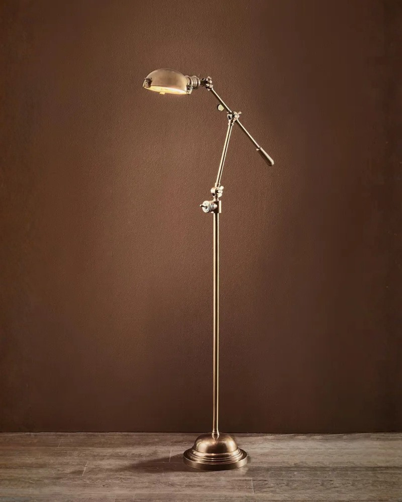 The Antique Brass Readers Floor Lamp offers a timeless, understated design that complements a variety of interior styles. Crafted from solid brass, the lamp features a manually adjustable height ranging from 1.2 m to 1.5 m, allowing the light to be positioned precisely for reading on a sofa or lounge chair. A generous 1.8 m cord and convenient foot switch provide effortless operation and flexibility in placement. Its sleek, sophisticated form combines subtle industrial touches with a classic antique brass finish, making it equally suited to farmhouse, cottage, or vintage-inspired interiors.