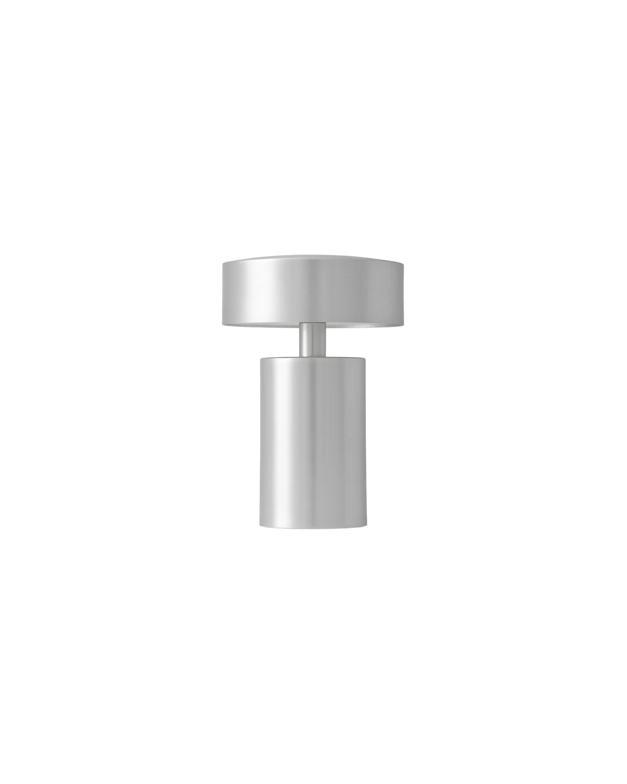 Silver cylindrical light fixture on a white background