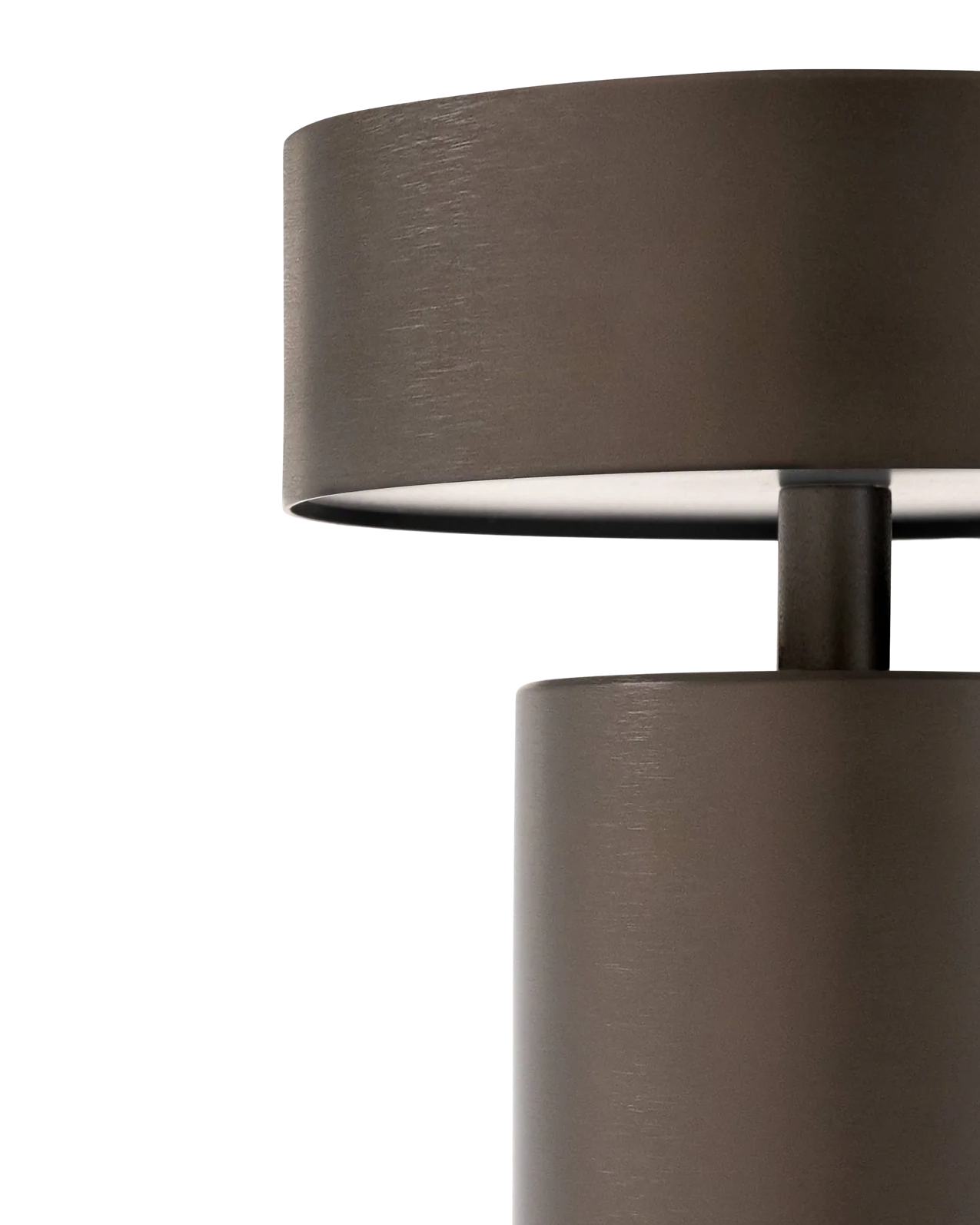 Close-up of a dark brown cylindrical lamp with a white background