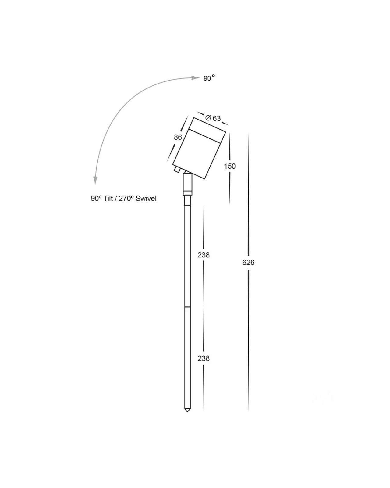 A single functional and modern garden spike light boasting a 90 degree tilt and a 270 degree swivel, perfect for illuminating outdoor spaces. Choose between three different finishes to blend seamlessly into any outdoor setting.