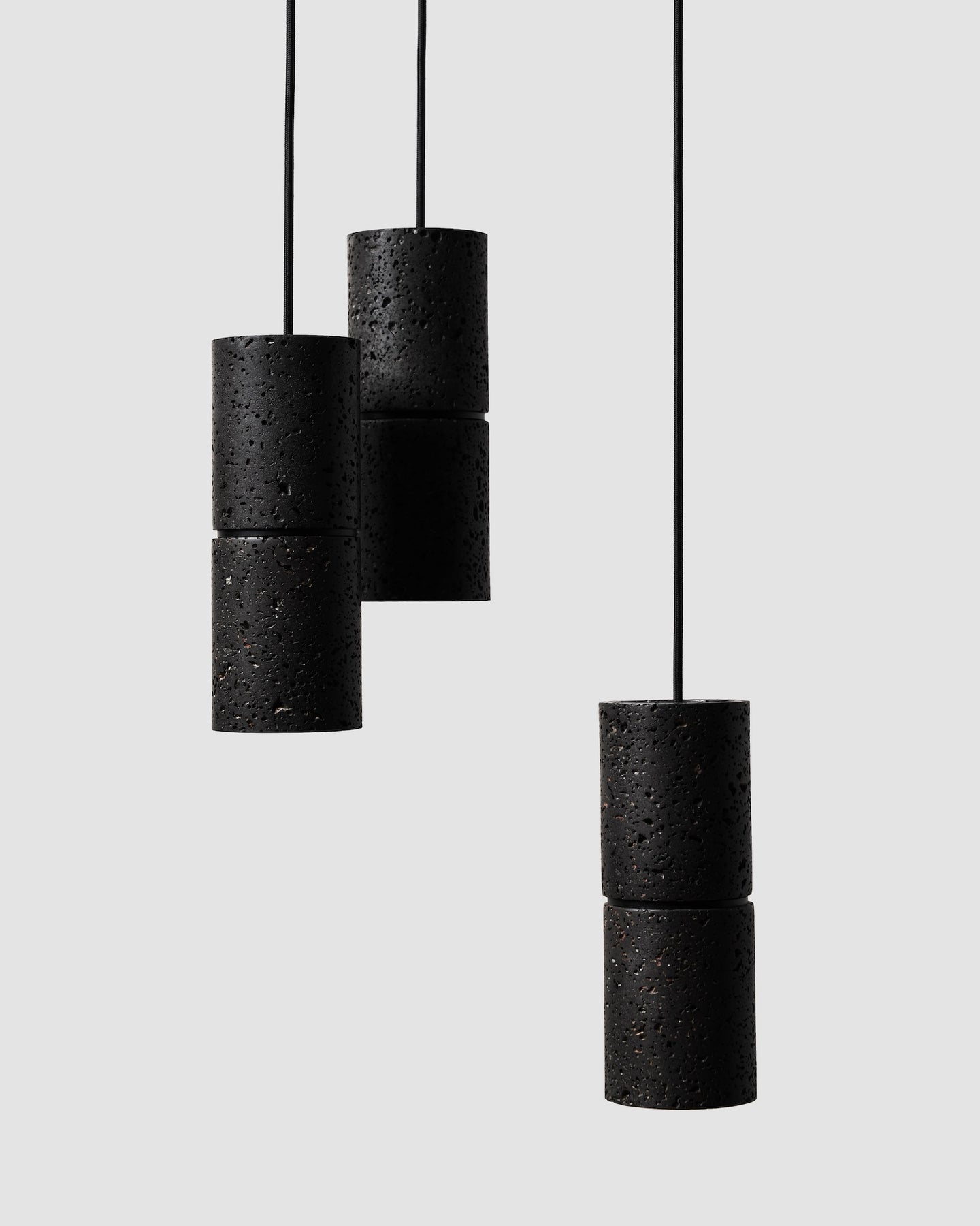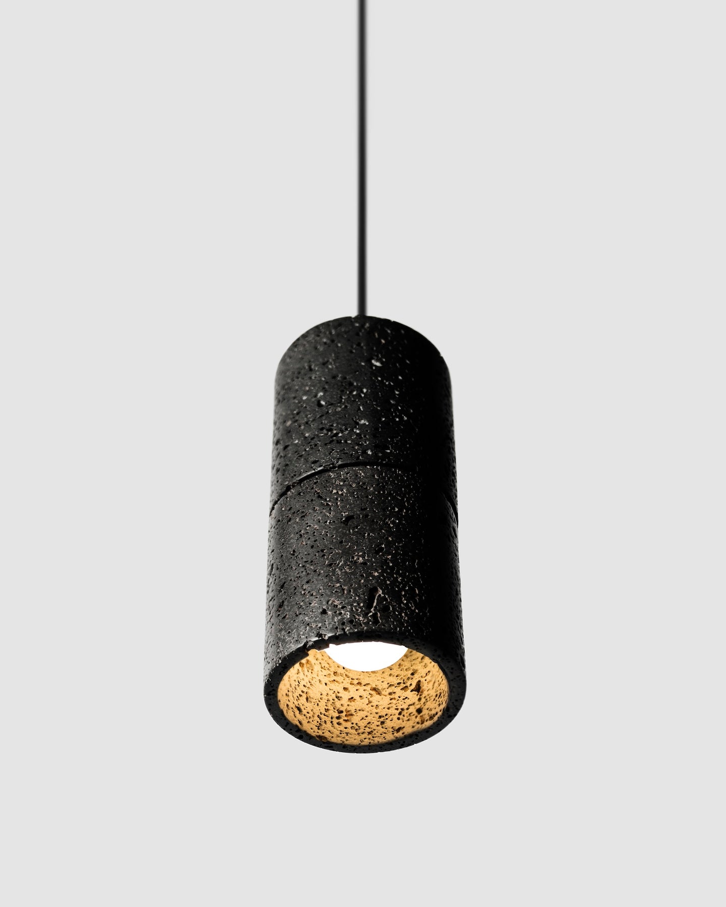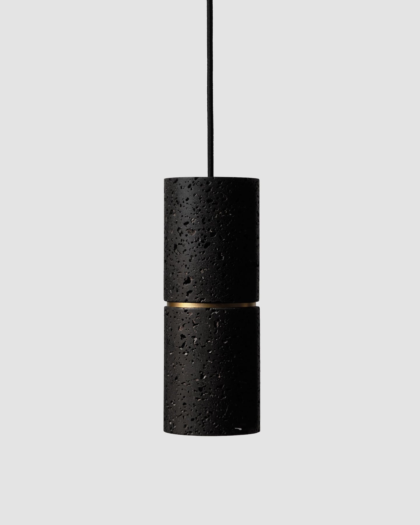 A study in contrast, the Ri Lava Pendant pairs raw volcanic stone with a precisely machined aluminium waist. Each pendant is carved from lava stone, a material formed through the rapid cooling of molten rock. Naturally porous and embedded with mineral traces, no two pieces are alike. Offered with a black or brass anodised aluminium waist, the Ri Lava Pendant brings a striking focal point to living rooms, bedrooms, or retail settings.