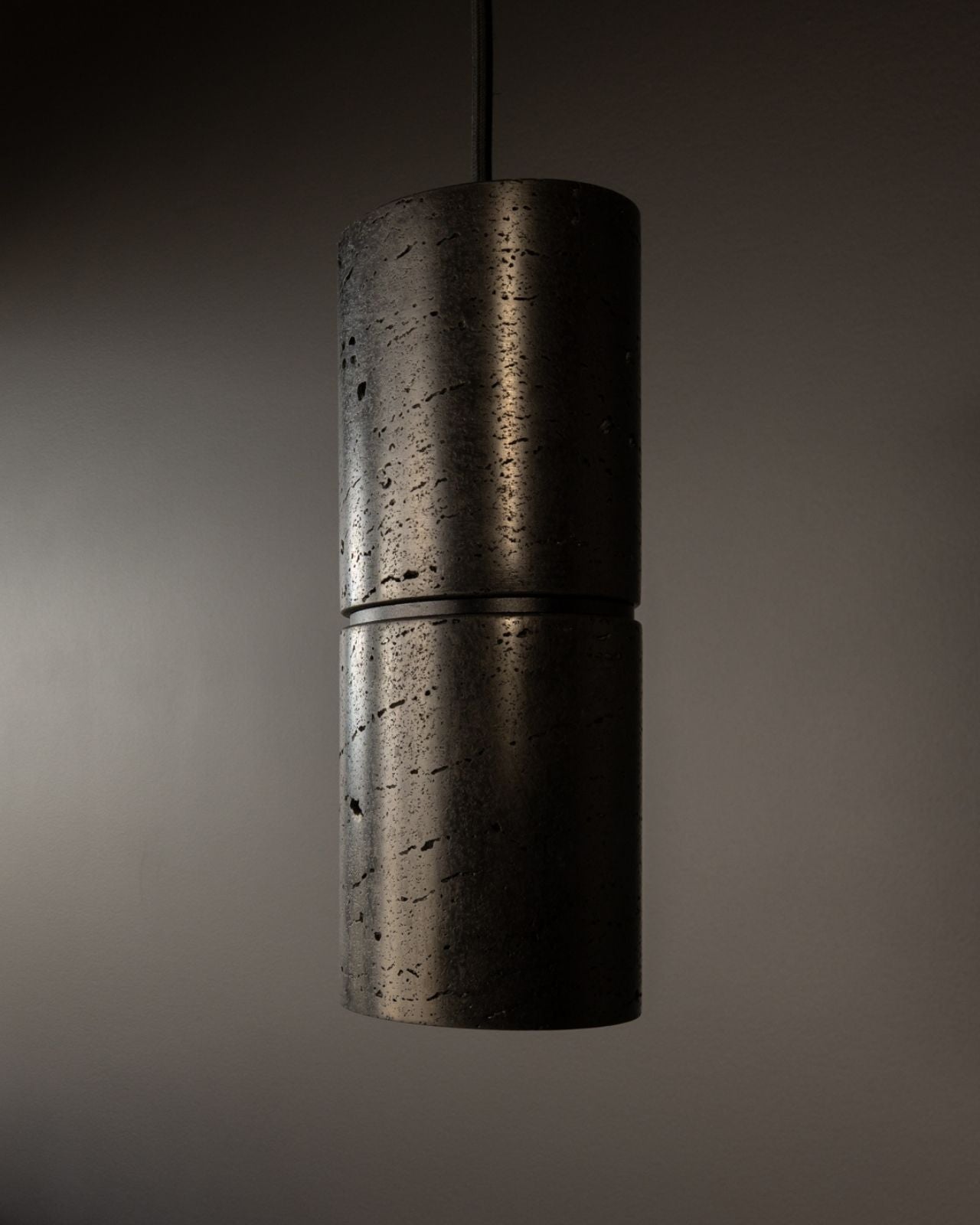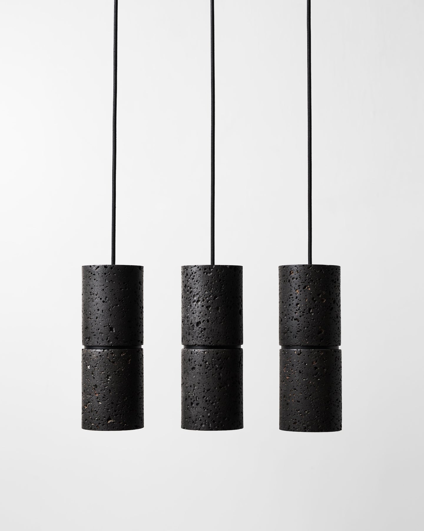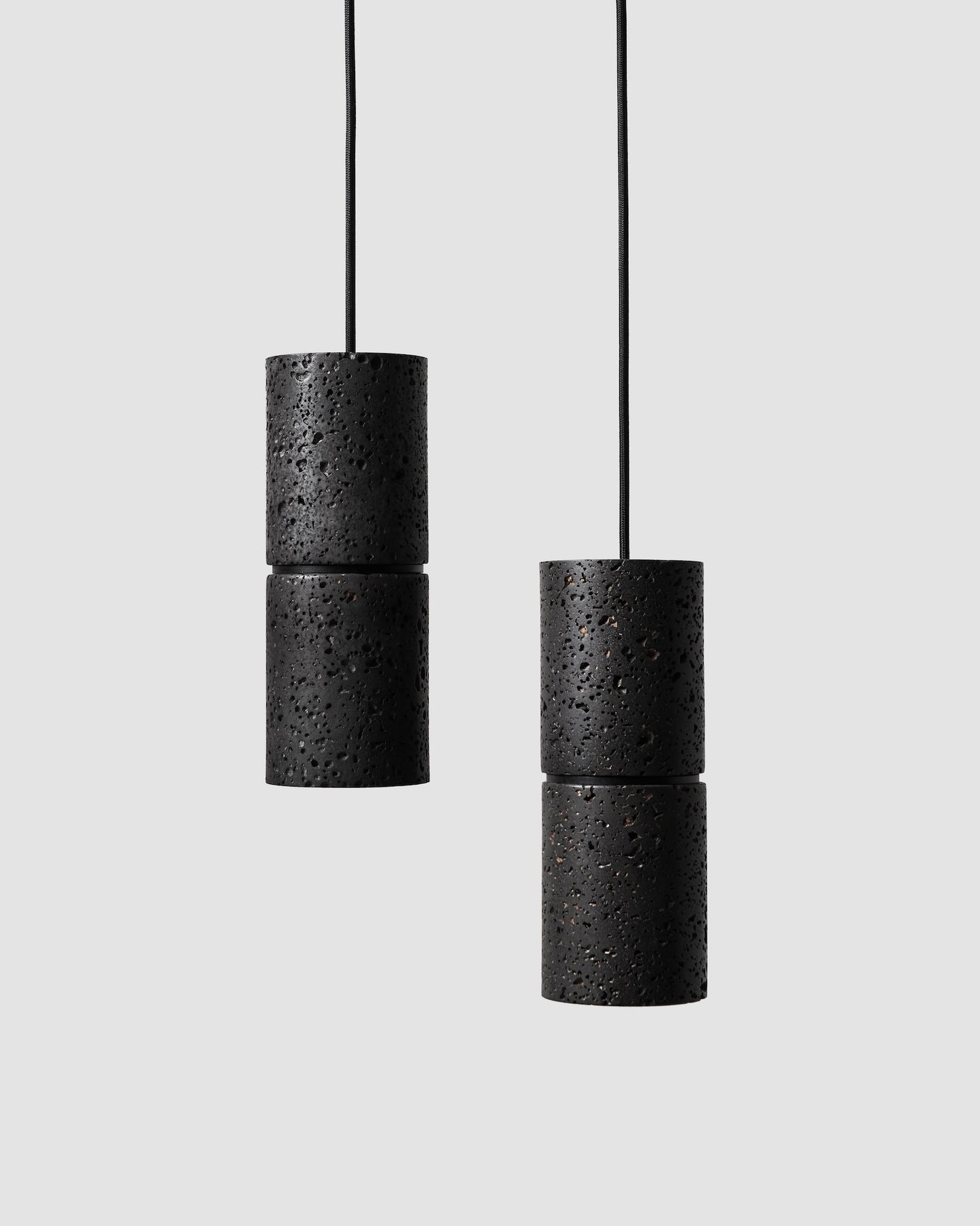 A study in contrast, the Ri Lava Pendant pairs raw volcanic stone with a precisely machined aluminium waist. Each pendant is carved from lava stone, a material formed through the rapid cooling of molten rock. Naturally porous and embedded with mineral traces, no two pieces are alike. Offered with a black or brass anodised aluminium waist, the Ri Lava Pendant brings a striking focal point to living rooms, bedrooms, or retail settings.