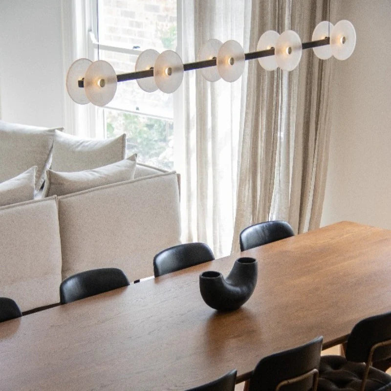 The Coral Linear Bar Pendant is meticulously hand-crafted and blown at 1000 degrees Celsius, shaping high-quality Swedish frosted glass into a refined flat disc. Its free-form design ensures each piece has its own character, making it a distinctive addition to any space. Designed and handmade in Currumbin, Australia, by Oliver Höglund and Ryan Roberts, this pendant reflects expert craftsmanship and attention to detail. Subtle variations from the handmade process enhance its uniqueness. Suitable for residential, hospitality, commercial, and architectural settings, it offers both sculptural presence and functional illumination.