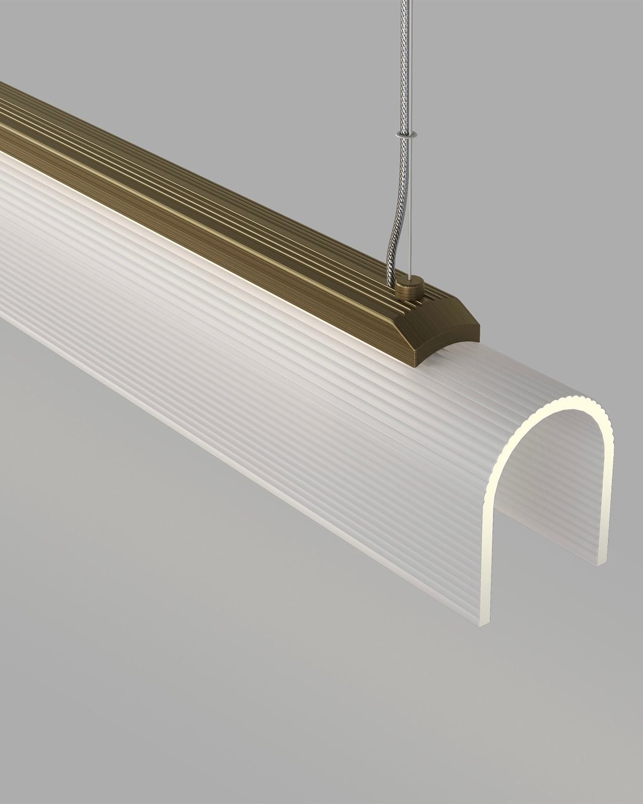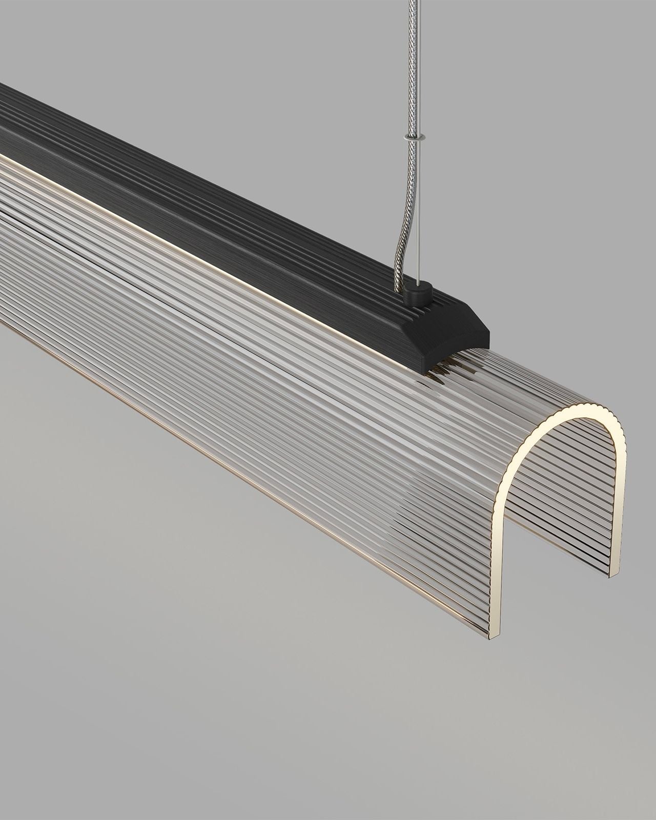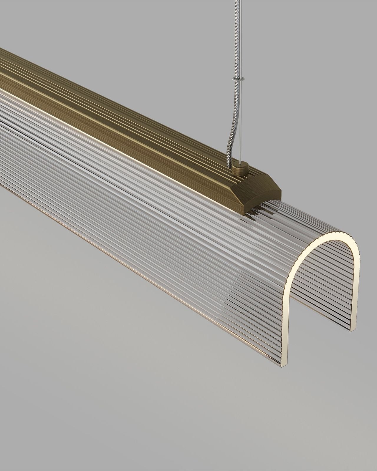 The Curved Glass Linear Pendant pairs a structured metal silhouette with a delicate, hand-slumped fluted glass shade. Available in Old Brass or Iron finishes, with a ribbed borosilicate glass shade in clear or frosted options, the design introduces subtle texture and depth while maintaining a minimalist profile. Ideal for long dining tables, kitchen islands, or commercial applications, this pendant delivers even, directional illumination with a sleek, linear aesthetic, making it a versatile solution for both residential and professional interiors.