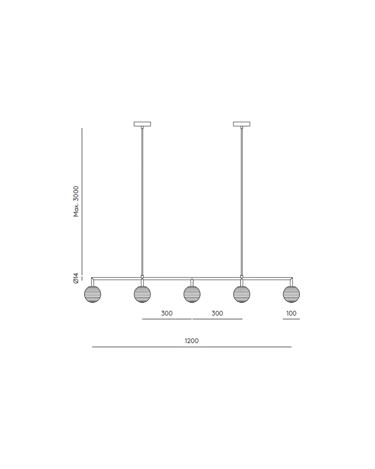 This striking linear pendant will make a statement over a dining table, in a living room or in a kitchen. The soft light is spread from five spherical shades made from ridged transparent glass. Combined with a matte black or matte brass steel linear structure, this pendant will add an elegant and timeless touch to contemporary or modern interiors.