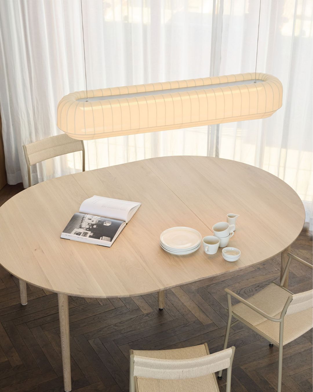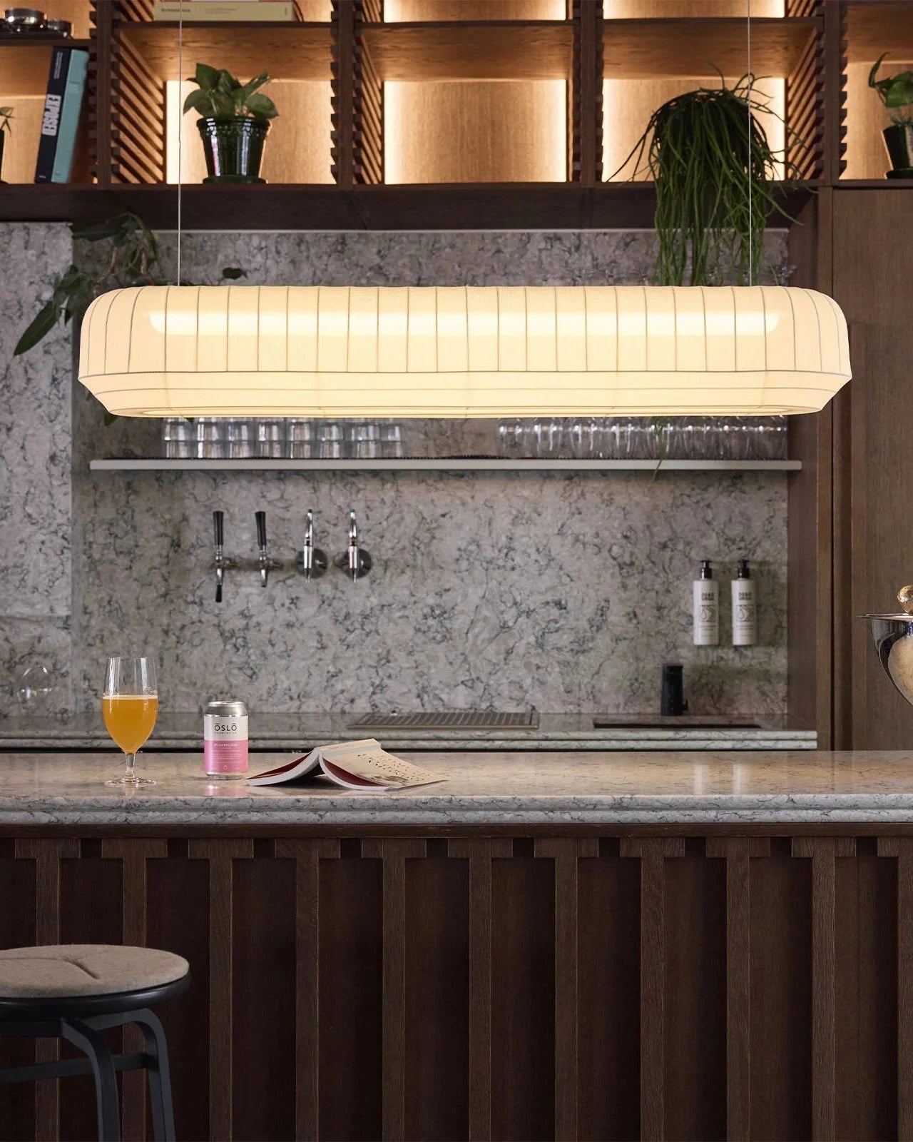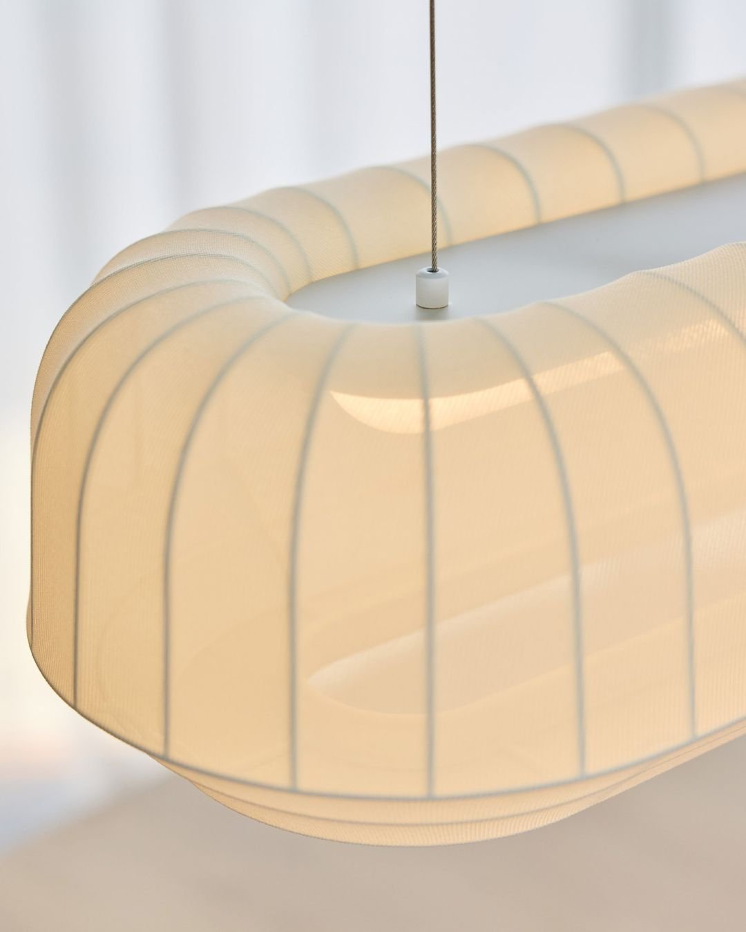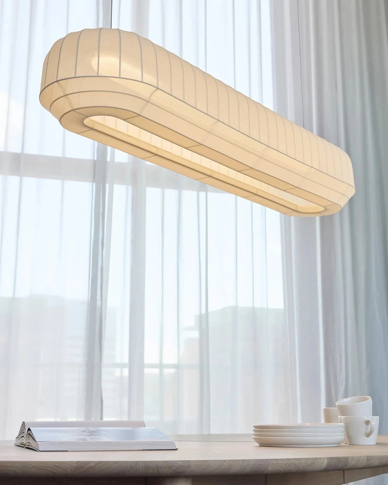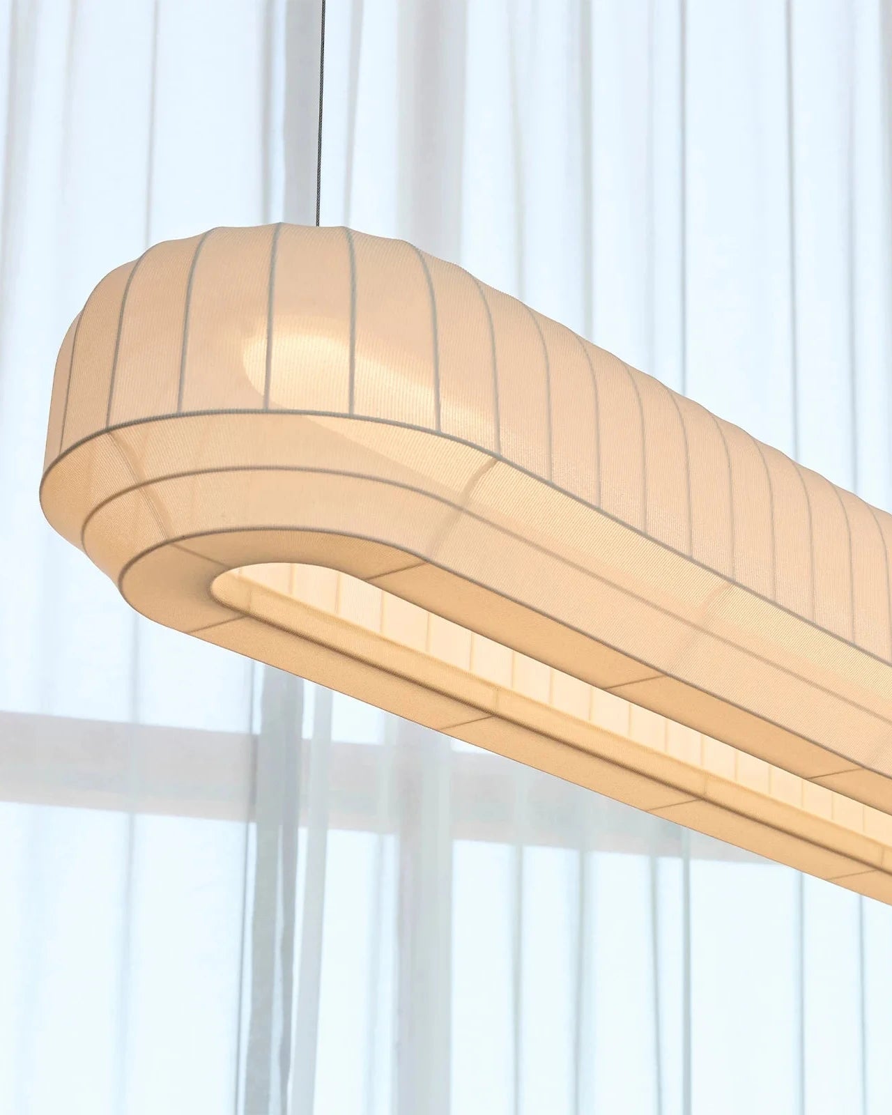 The Knitted Stretched Fabric Linear Pendant draws on Japandi-inspired design, offering a refined balance of texture and form suited to both residential and commercial interiors. Its elongated profile makes it ideal for dining tables, kitchen islands, meeting rooms, and open-plan spaces where gentle, diffused illumination is preferred.