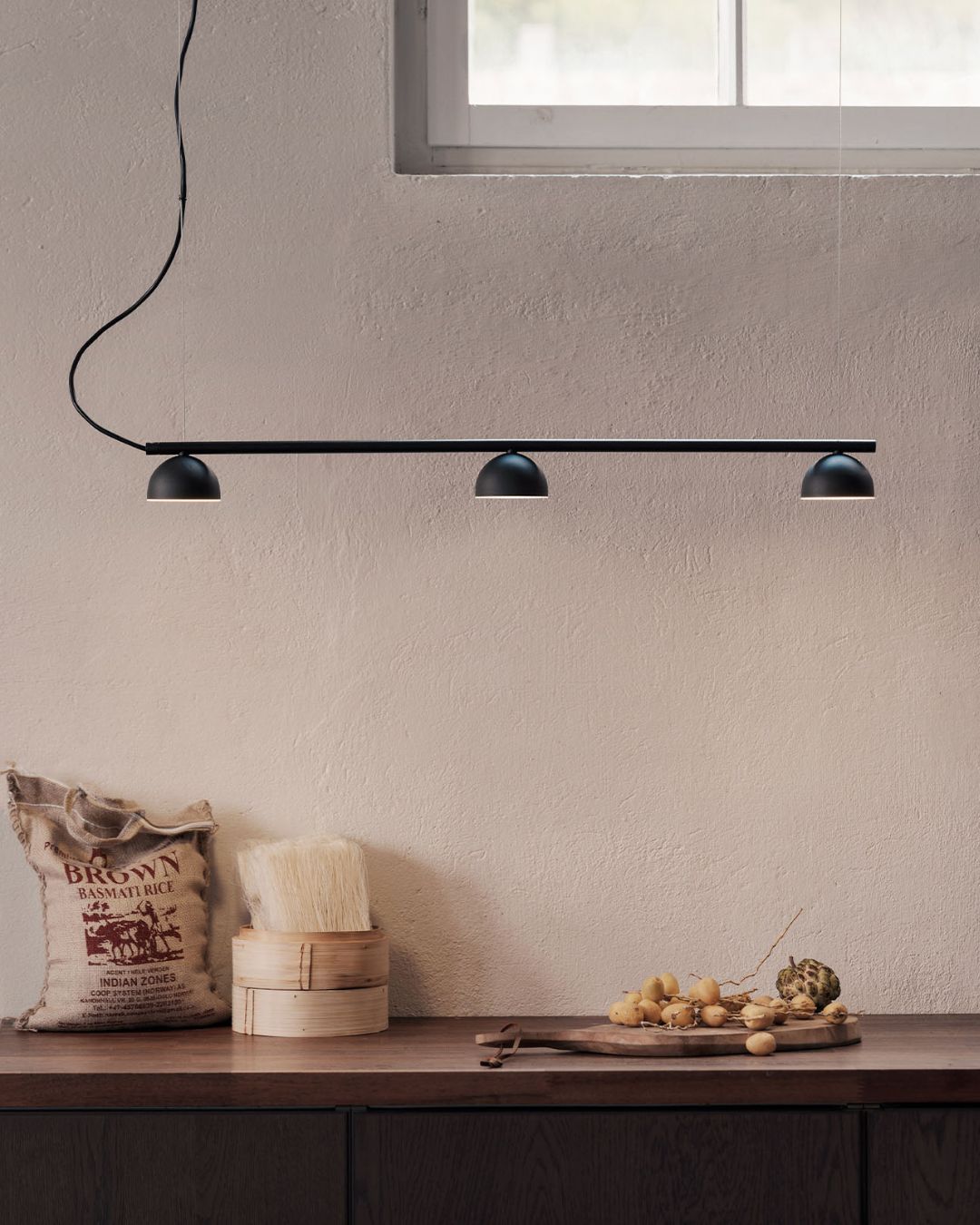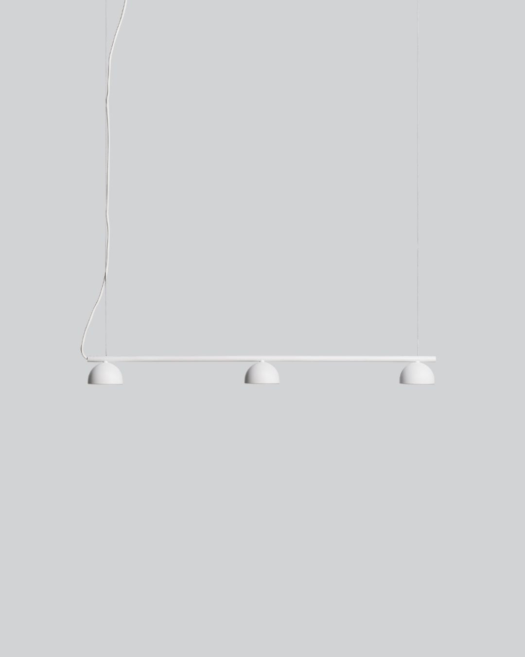 This Norwegian Linear Design marries simplicity and functionality with three LED lights evenly spread along a minimal linear rail. Designed to enhance and improve everyday tasks within the home. Three 3000K LED's lights are housed within small opal acrylic diffusers providing warm downwards facing illumination. Made from powder-coated steel and available in black, white or warm-beige this light will transform any interior space by adding a pool of warm light. Ideal for placement over kitchen islands, dining tables or lining a hallway or lobby space.