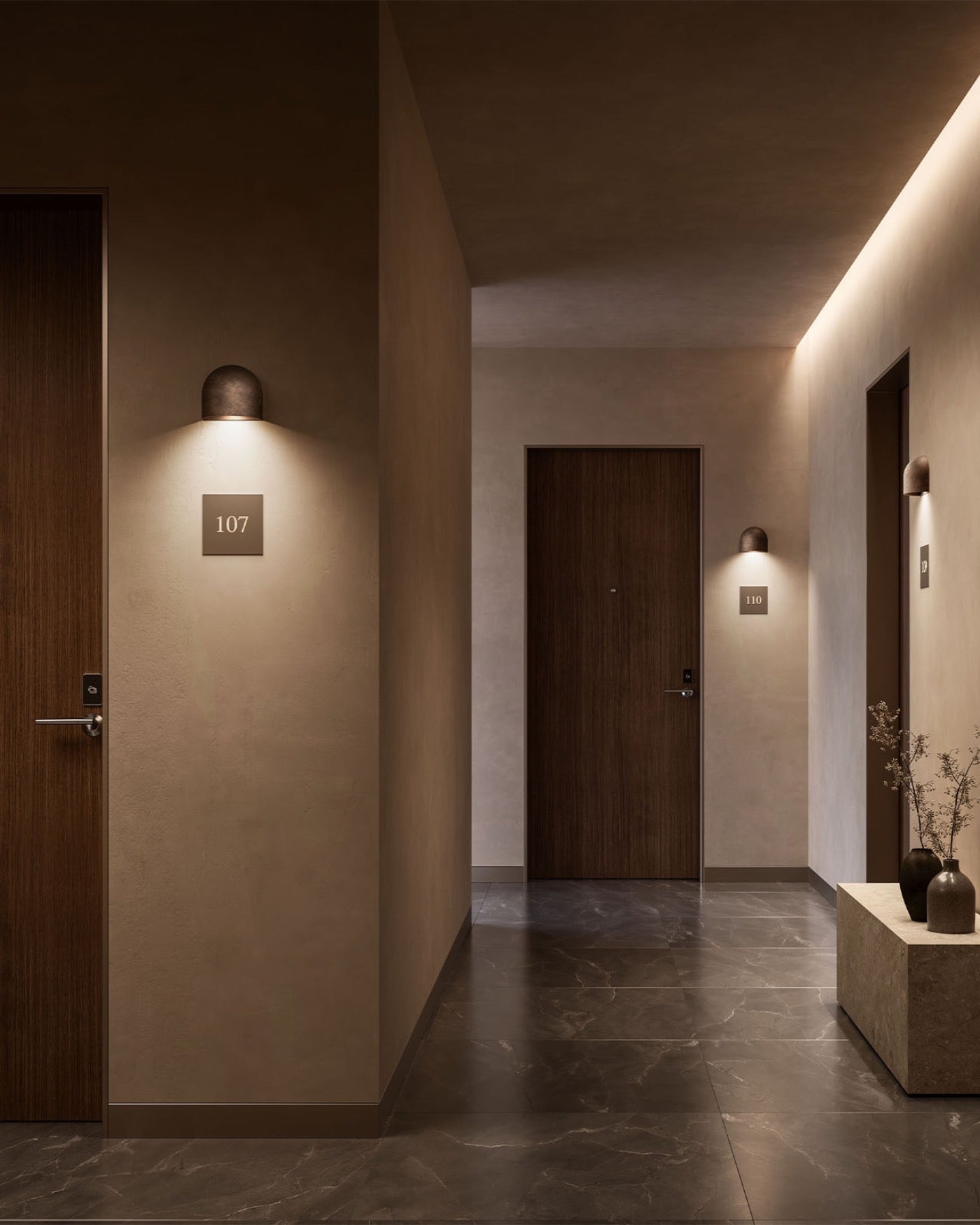 This compact wall light blends sculptural geometry with rich materiality to create a striking interplay of light and shadow. Crafted in dark brass and available in round or square profiles, this IP65-rated fixture is designed for both indoor and outdoor use. Whether illuminating a hallway or enhancing an exterior wall, it transforms flat surfaces into dimensional compositions—where reflections shift and depth emerges with every angle.