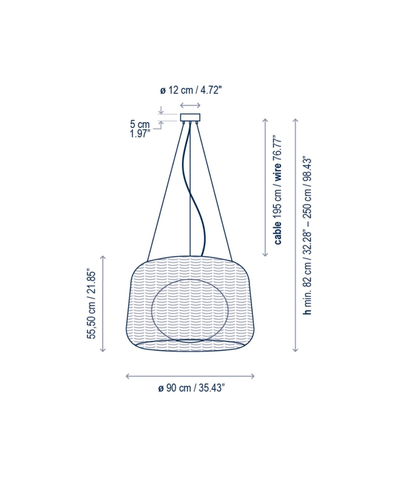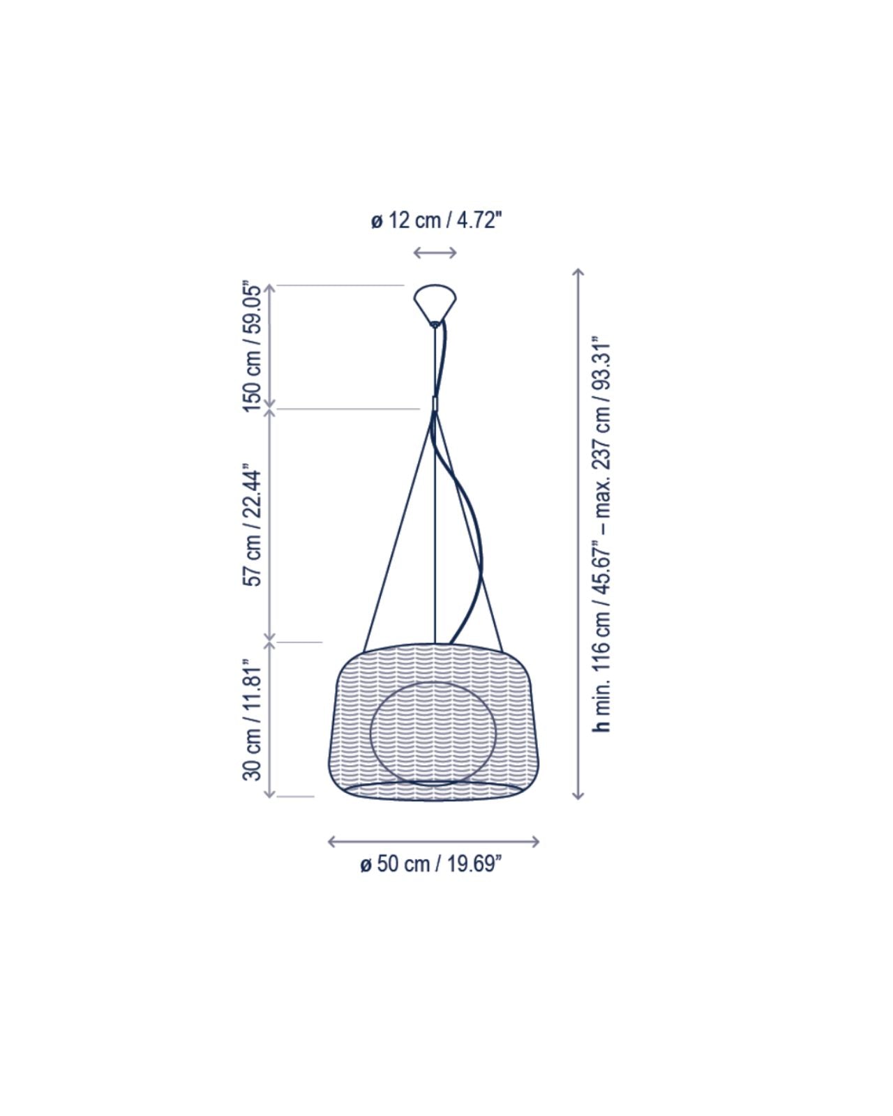 Designed in Spain, and made using a rattan-like woven weatherproof material, this pendant light is uniquely suited for both indoor and exterior spaces. The Exterior Woven Basket Pendant Light is available with a brown or white finish shade, will provide warm illumination when paired with 2 x E27 globes (not included), and is IP-rated IP65, making this pendant suited to elevate your indoor and outdoor living spaces. Available in two sizes 500mm and 900mm.